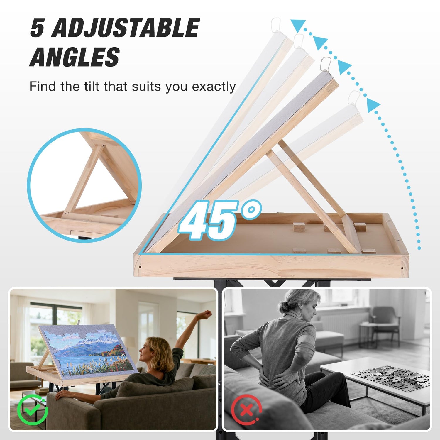 • Find Your Ideal Fit & Tilt: Engineered for comfort, this puzzle table with drawers adjusts in height from 29" to 37", complete with precise markings that let you effortlessly find your ideal height in minutes. Its surface locks securely at 5 positions up to 45°. This design supports a healthy posture for hours of enjoyable puzzling