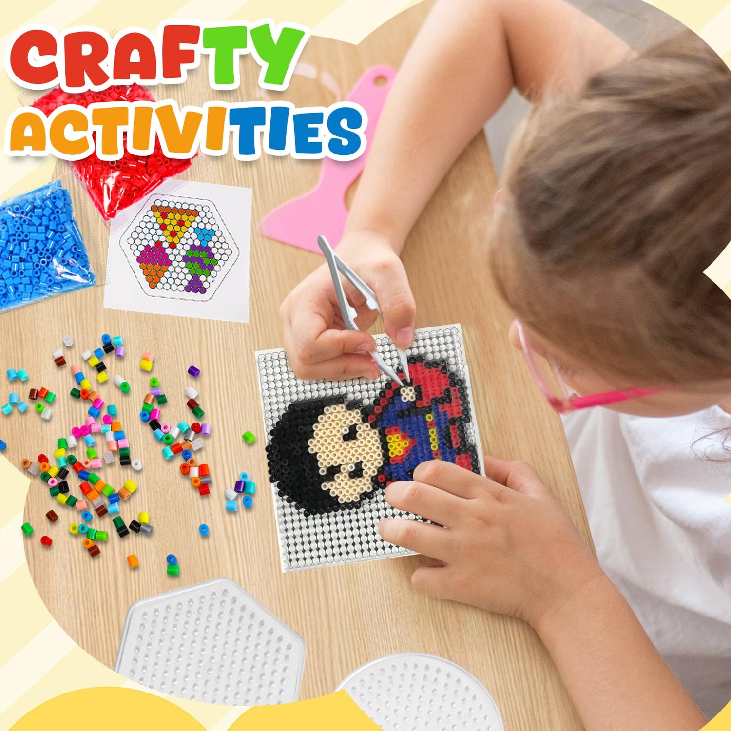- 【Unlimited Creativity】Unlock endless possibilities with our fuse beads set, an excellent craft activity that fuels imagination and creativity. Kids and adults can build whatever they envision, from common objects to unique designs they see around them. With limitless creations, this craft set ensures hours of innovative fun.