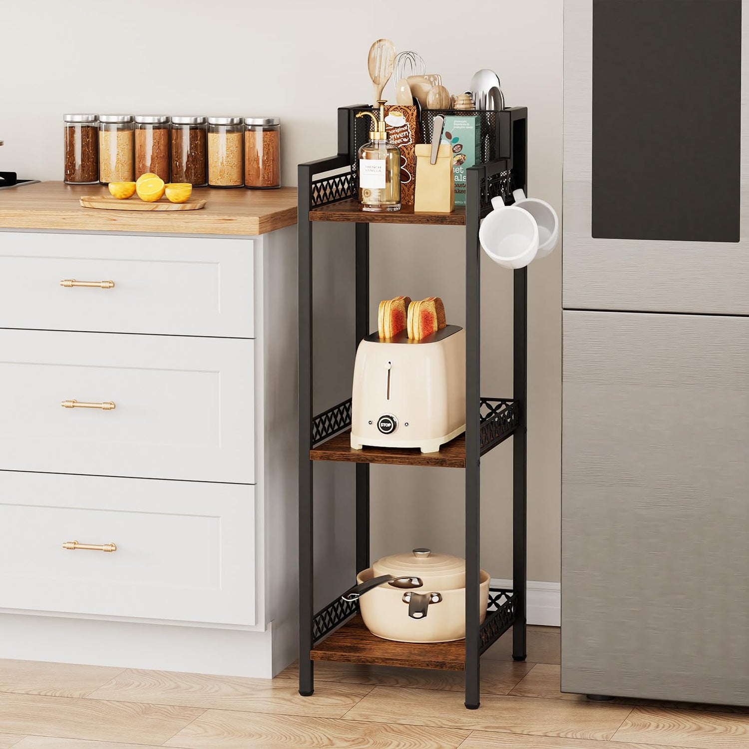 FURFUN 3-Tier Bathroom Shelf Organizer with Hair Dryer Holder and Toilet Paper Hook, 9.85" Slim Metal Stand for Small Spaces, Holds 50lbs - Freestanding Storage for Towels, Toiletries