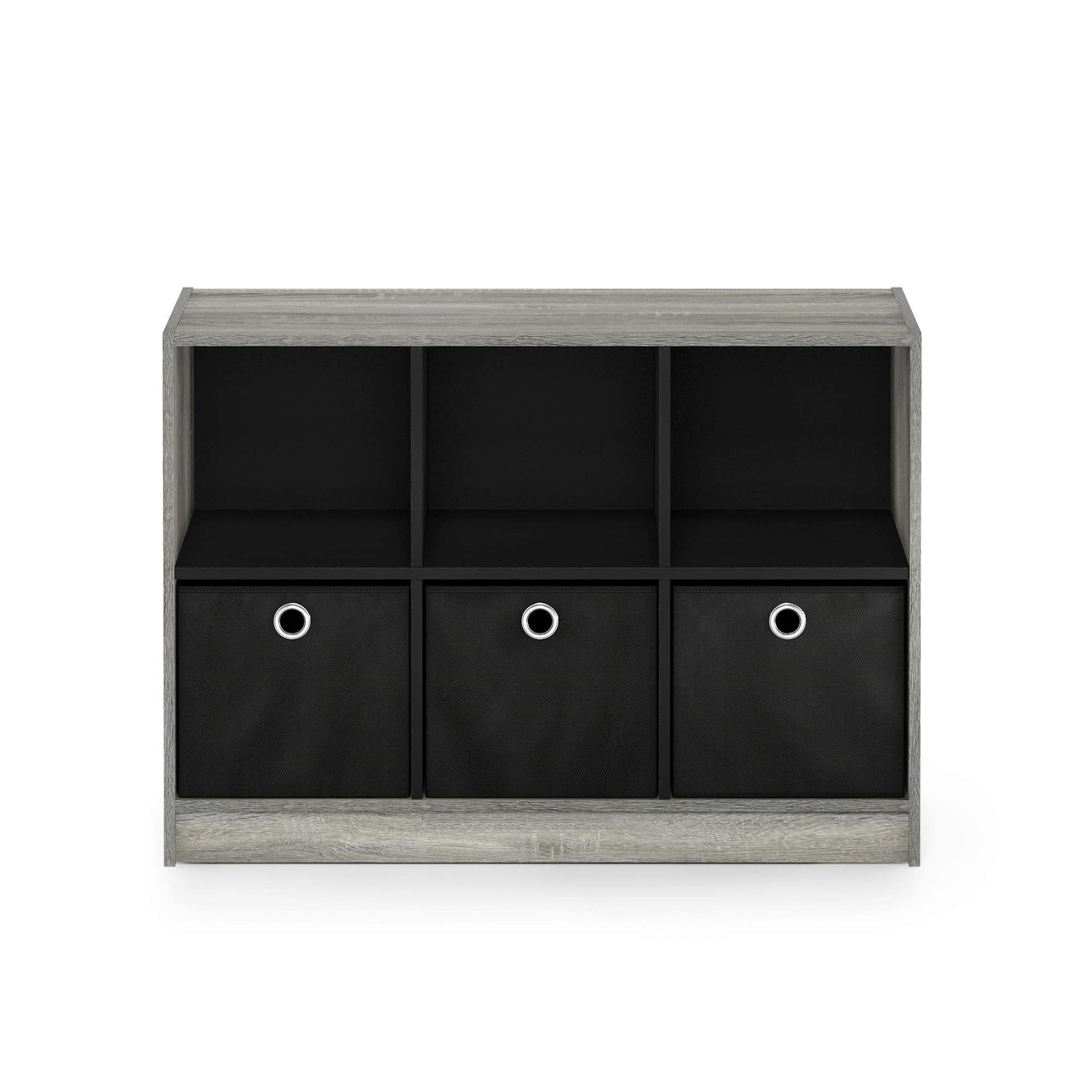Furinno Basic 3x2 Cube Storage Bookcase Organizer with Bins, French Oak Grey/Black