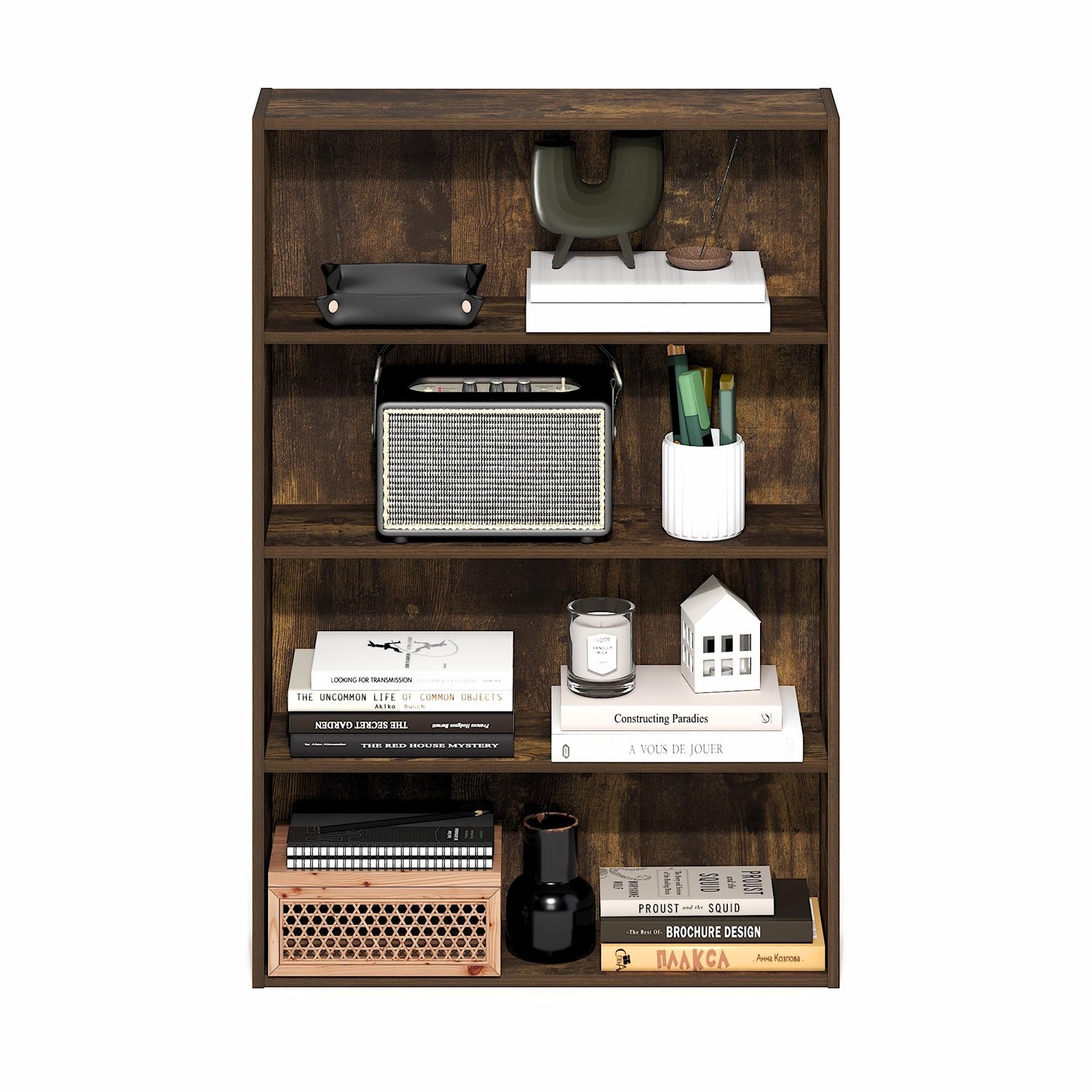 Details: The Furinno Basic 4-Tier Open Shelf Bookcase is a functional and versatile bookshelf, storage organizer, and display shelf designed to keep your home or office tidy and stylish. Featuring durable engineered wood and open shelving, this compact bookcase is ideal for storing books, décor, plants, baskets, and other essentials in living rooms, bedrooms, home offices, dorm rooms, or apartments. With multiple size options and a space-saving design, this bookshelf fits perfectly in small spaces while adding practical storage and modern style to any room. The Bookcase is made of CARB-grade composite wood tested for durability and sturdiness. Assembly is easy with provided step-by-step instructions. Care instructions: wipe clean with a clean damped cloth. Avoid using harsh chemicals. Pictures are for illustration purposes. All decor items are not included in this offer. The product is entitled to a 1-year warranty against manufacturer defects. Fits Space, Fits Budget.