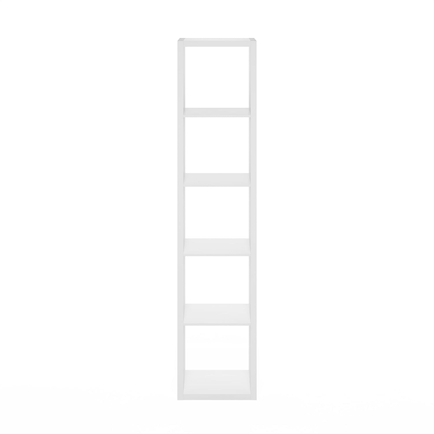 Furinno Cubicle Book Shelf, Vertical 5-Cube Bookshelf, Extra Thick Frame Horizontally & Vertically Reversible Bookcase with Open Back, 14.6" x 16" x 72", for Living Room, Bedroom, Home Office, White