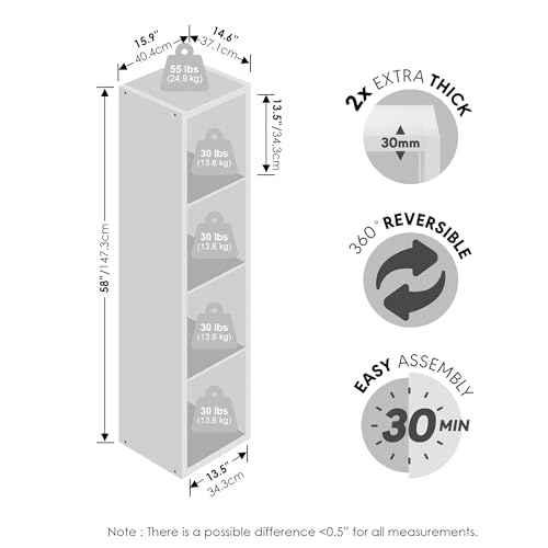 - RECORD PLAYER STAND & OPEN-BACK CABLE PASS: This 4-cube record player stand/DVD shelf provides a sturdy turntable top and open-back cubes shelf for vinyl records, speakers, record brush, storage bins, and game discs so the media shelf cabinets keep media organized, ventilated, and easy to access