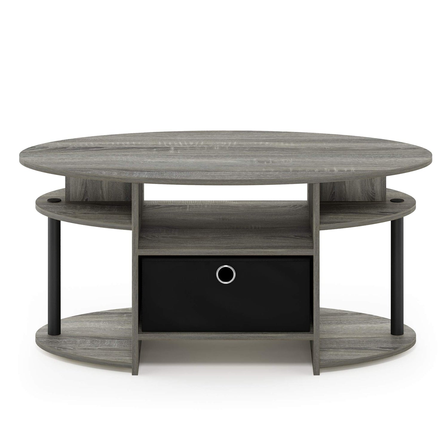 Furinno Jaya Oval Coffee Table, French Oak Grey/Black/Black