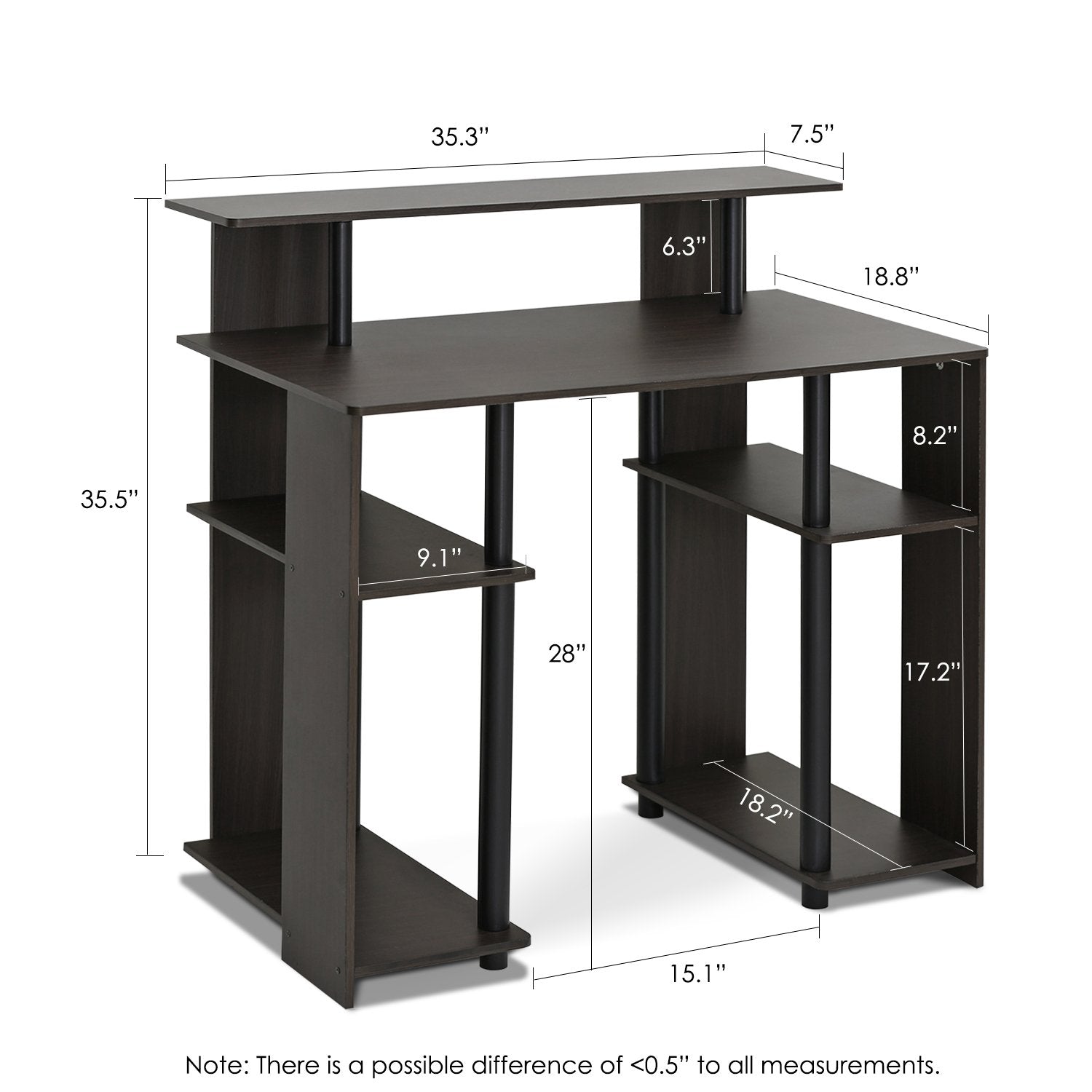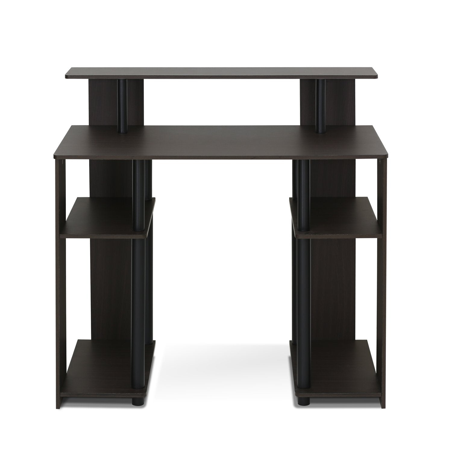 - Simple stylish design features shelves on both sides for CPU and books, elevated shelf for a compact printer or other stationery decor