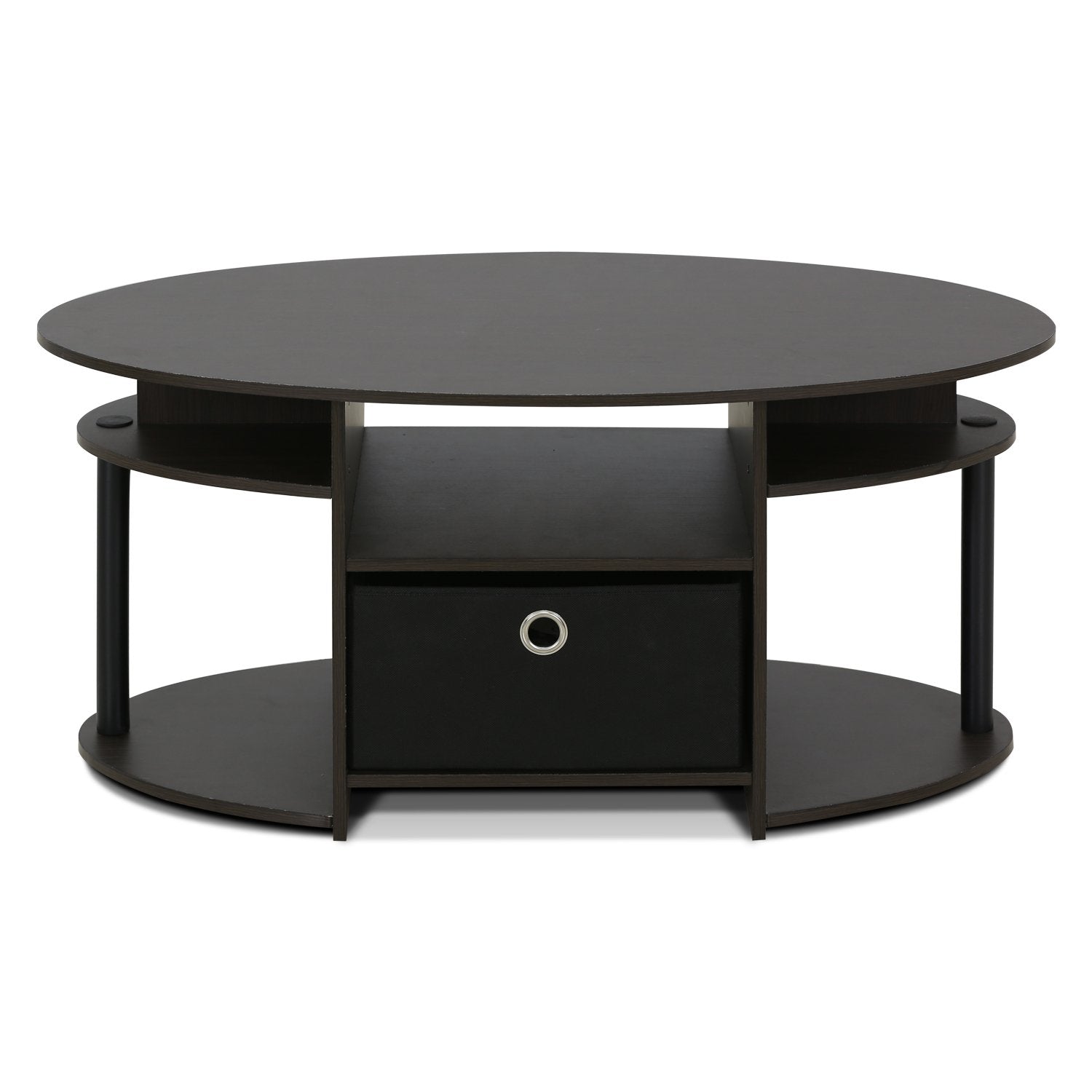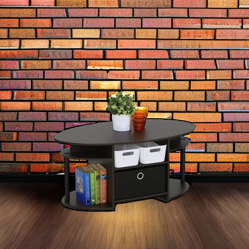 Furinno Jaya Simple Design Oval Coffee Table with Bin for Living Room, Walnut