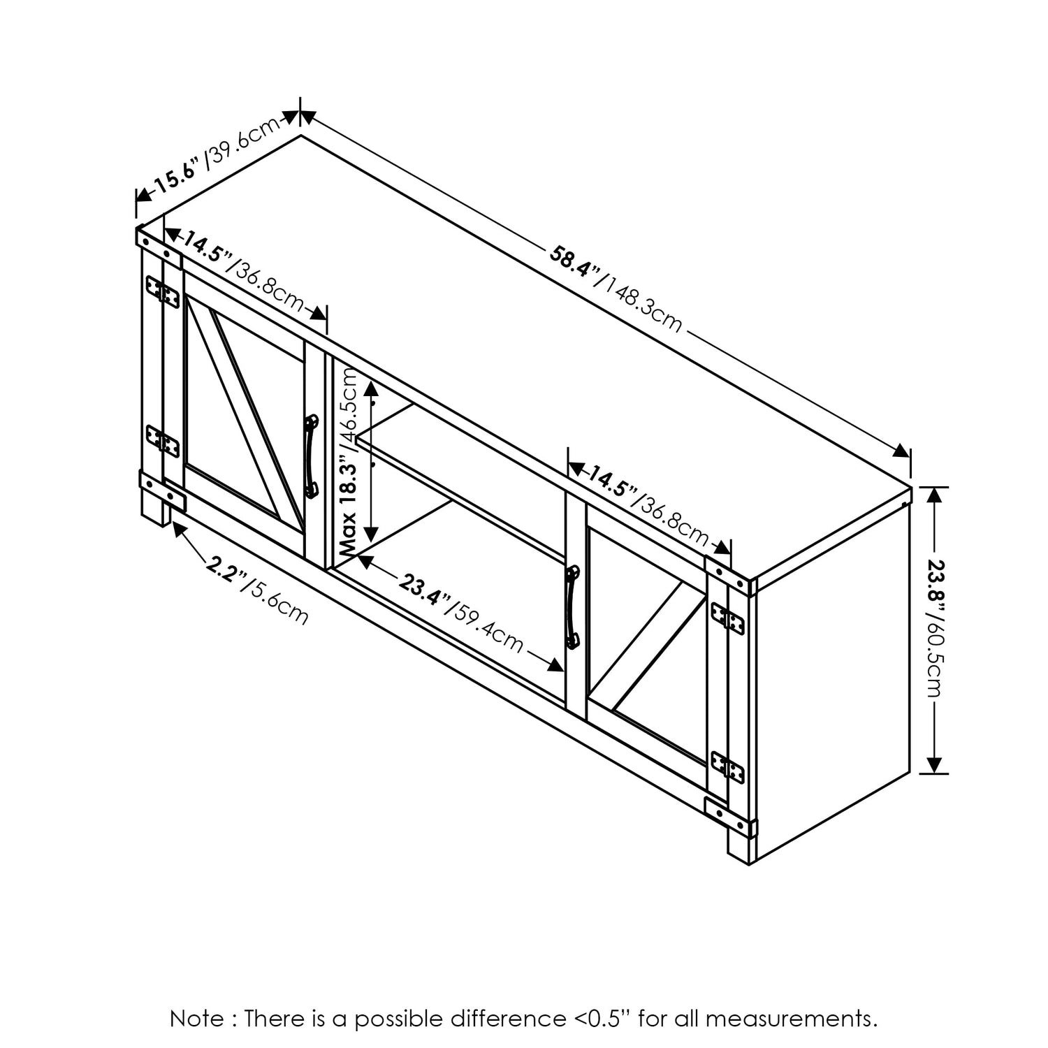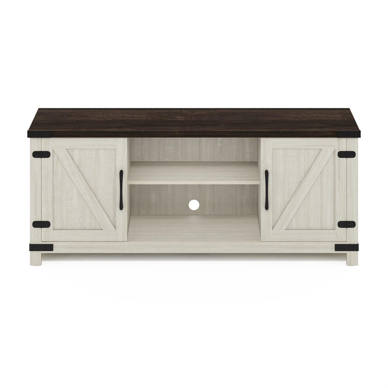 Furinno Jensen Farmhouse Barn Door Living Room TV Stand with Storage Cabinets for TV up to 70 Inch, Ebony/White Wash