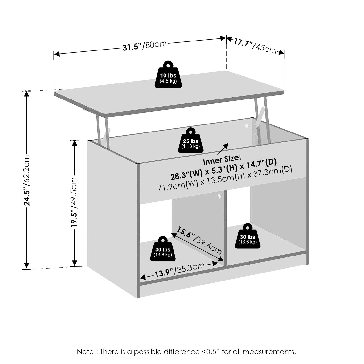- Product Dimensions: 17.7 (D) x 31.5 (W) x 19.5 (H) inches