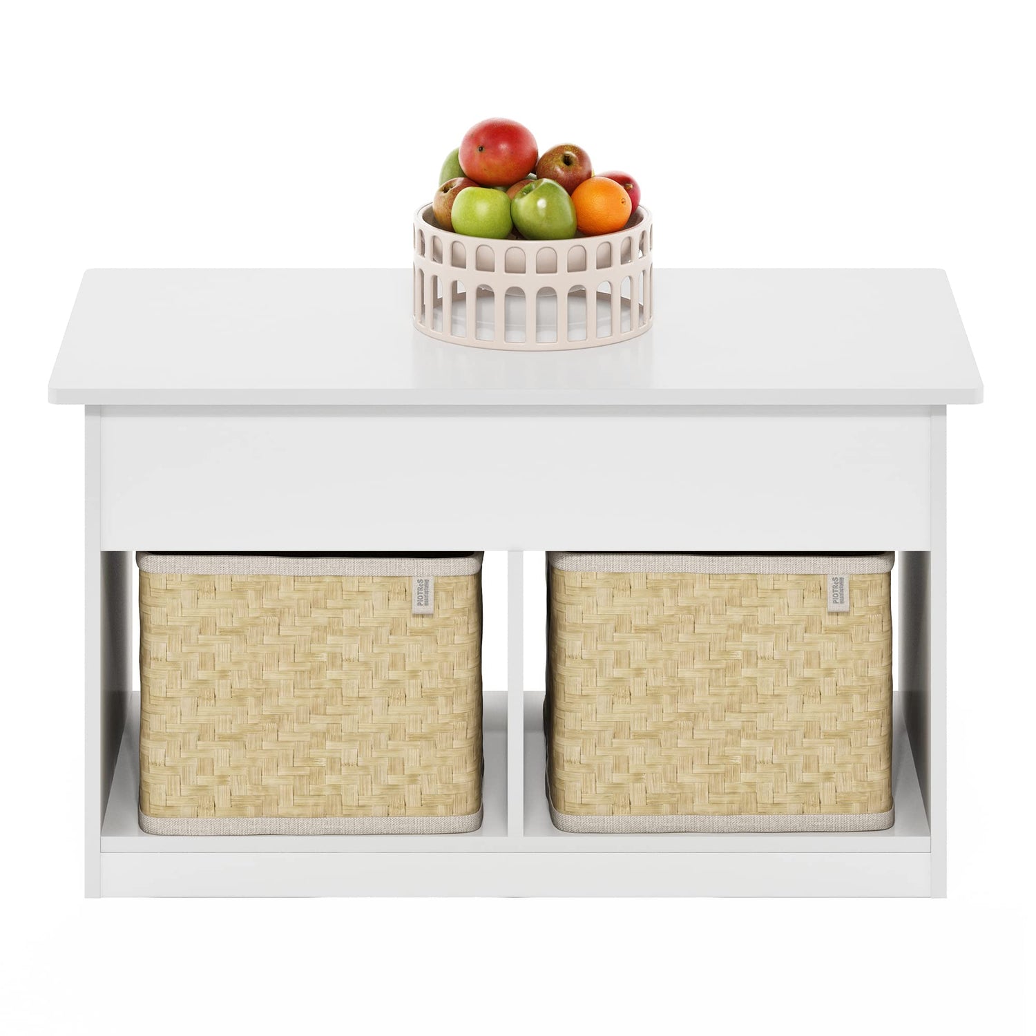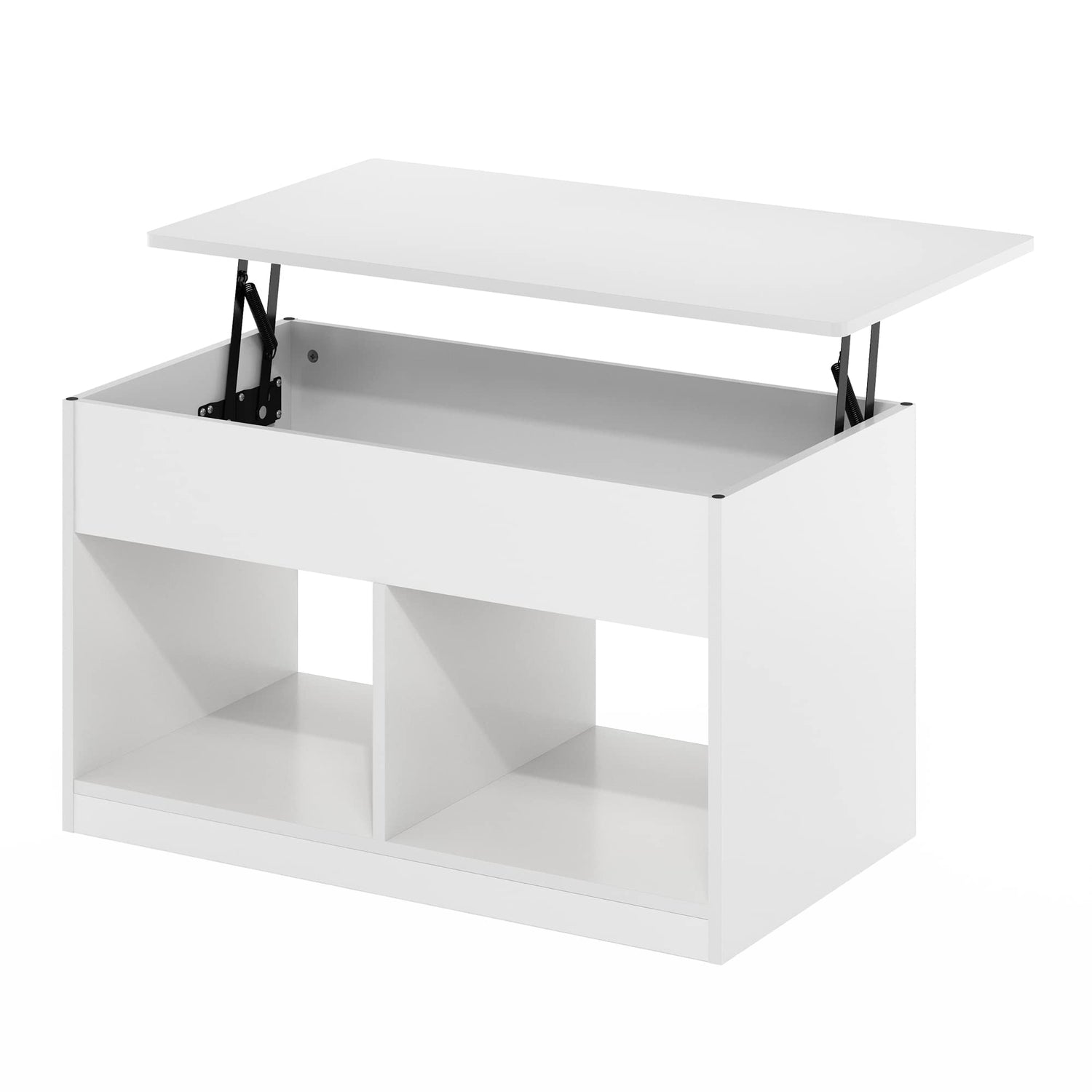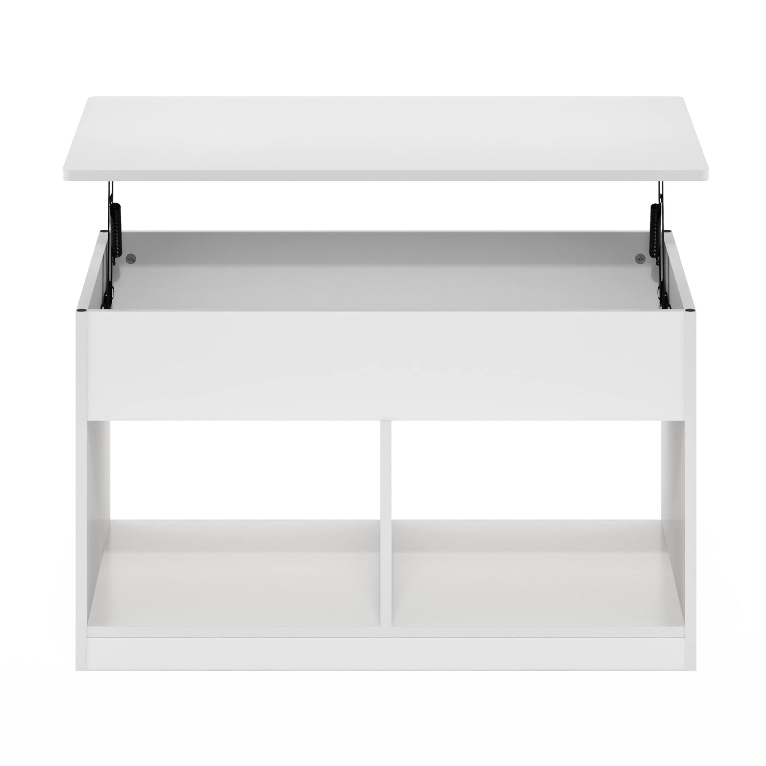Furinno Jensen Living Room Lift Top Coffee Table with Hidden Compartment, Solid White