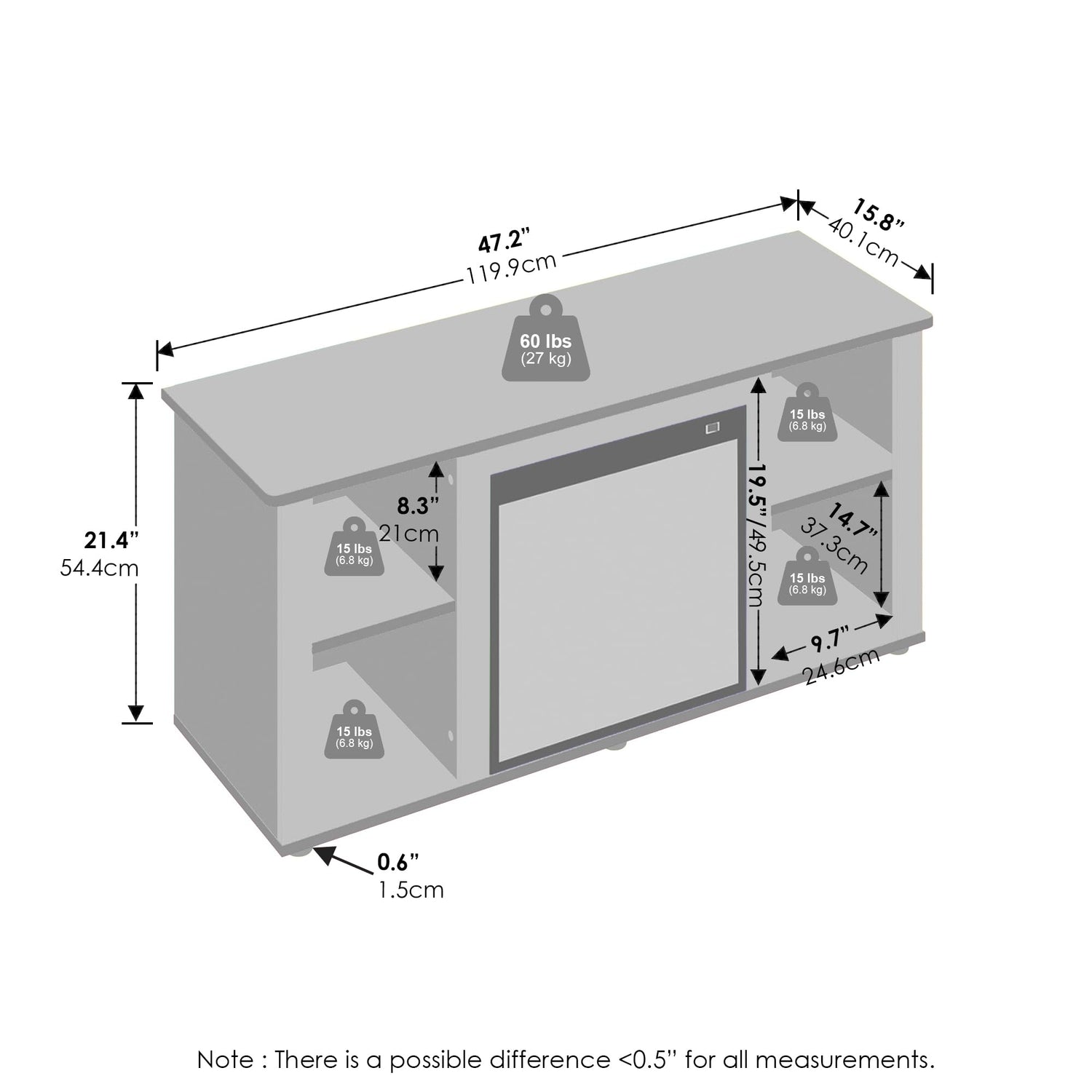 Furinno Jensen No Heat Decorative Electric Fireplace TV Stand, Entertainment Center for TV up to 55 Inch, Americano