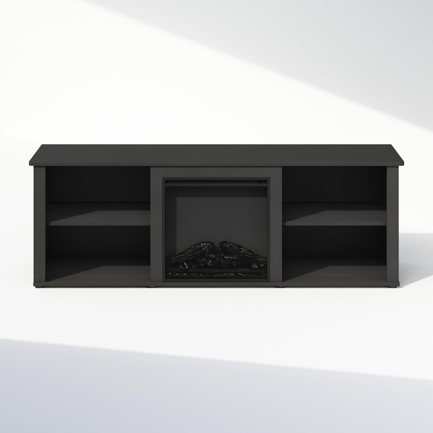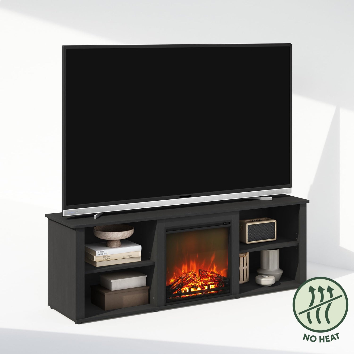 - The electric fireplace TV stand features a lifelike flame effect that creates a cozy ambiance in the living room. Please note that it does not provide heat.