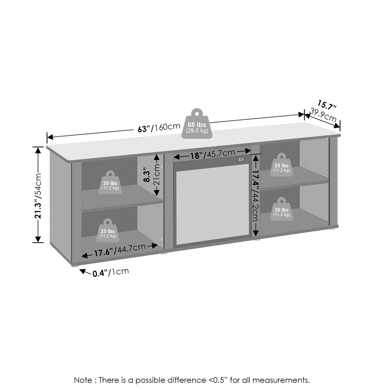 - Product Dimensions: 15.67 (D) x 62.99 (W) x 21.3 (H) inches