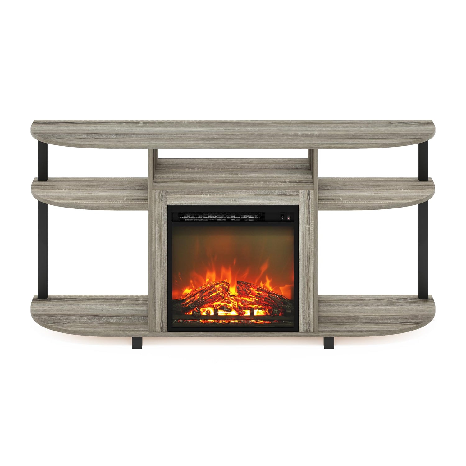 Furinno Jensen Open Storage Curved Entertainment Center Stand with Fireplace for TV up to 55 Inch, French Oak Grey