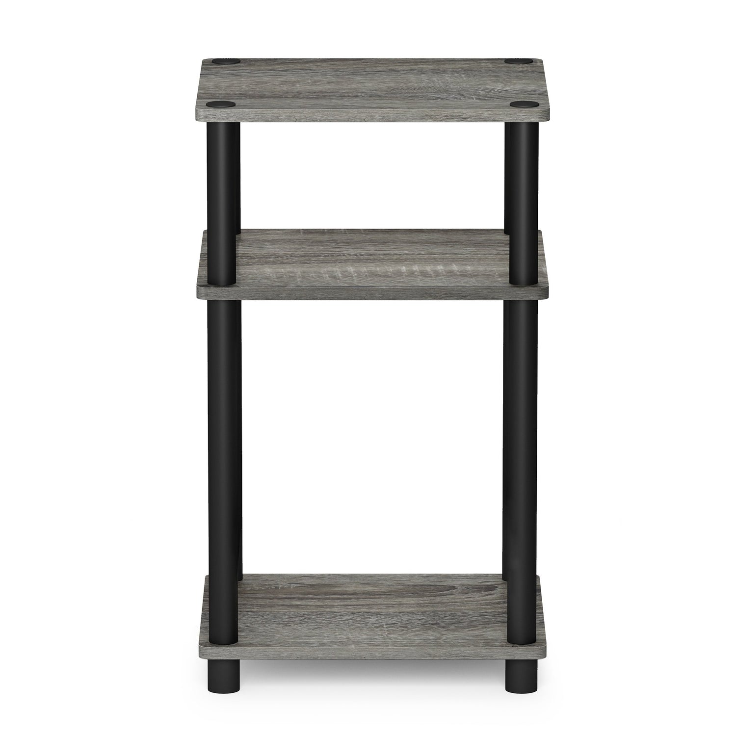 Furinno Just 3-Tier Turn-N-Tube End Table / Side Table / Night Stand / Bedside Table with Plastic Poles, 1-Pack, French Oak Grey/Black