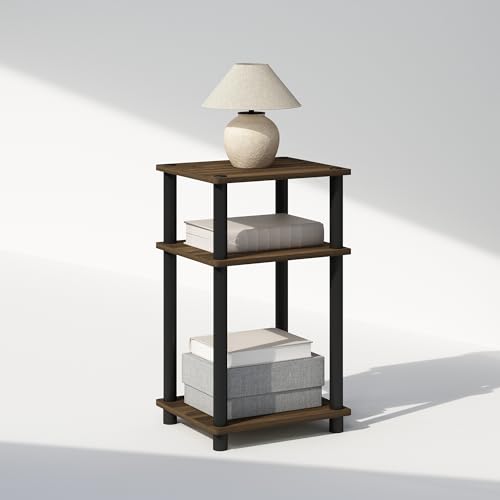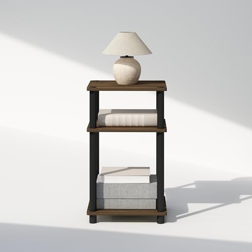 Furinno Just 3-Tier Turn-N-Tube Open Storage Nightstand, 1-Pack, Plastic Poles, Columbia Walnut/Black