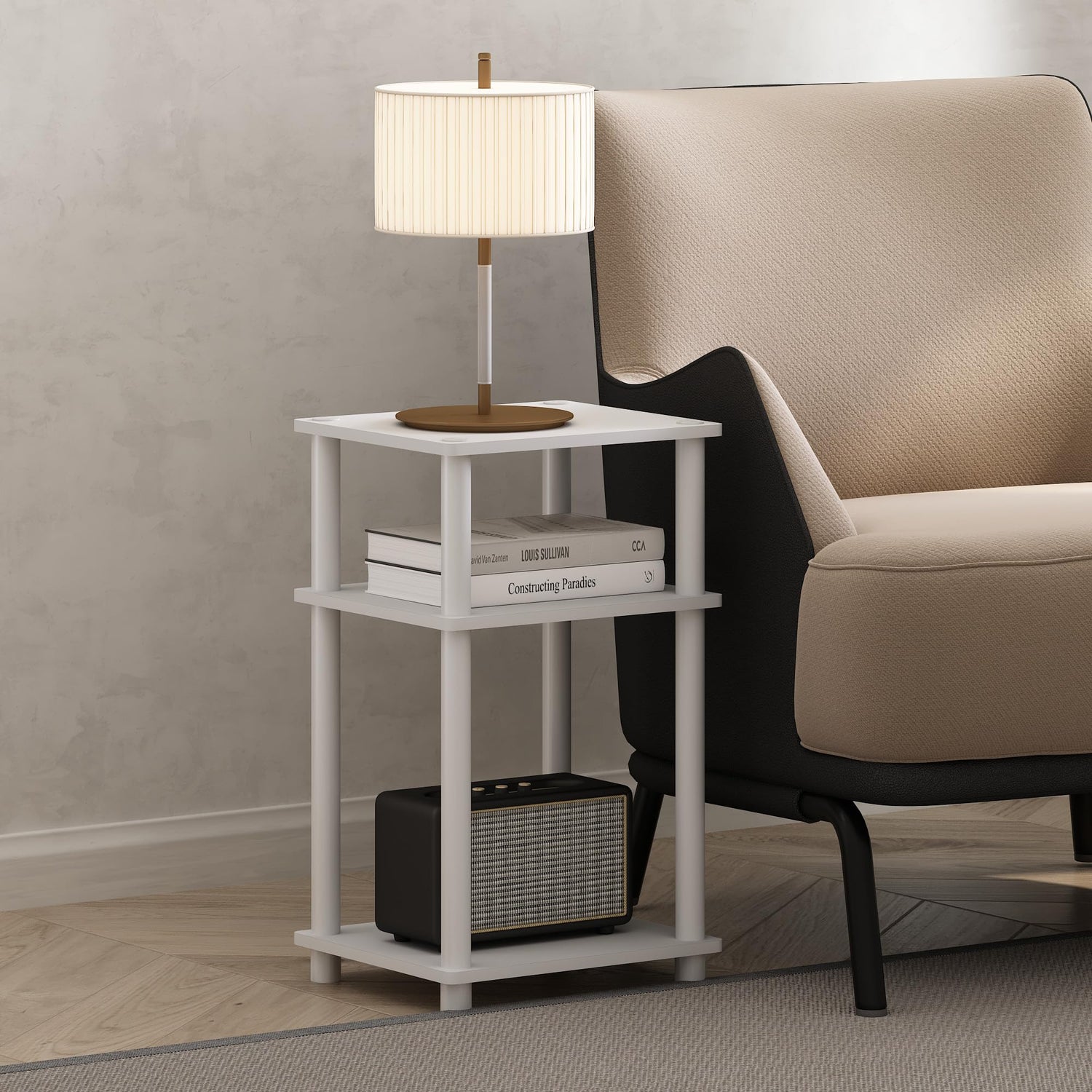 Furinno Just Turn-N-Tube Open Storage Nightstand, 1 Pack, 3-Tier, White/White