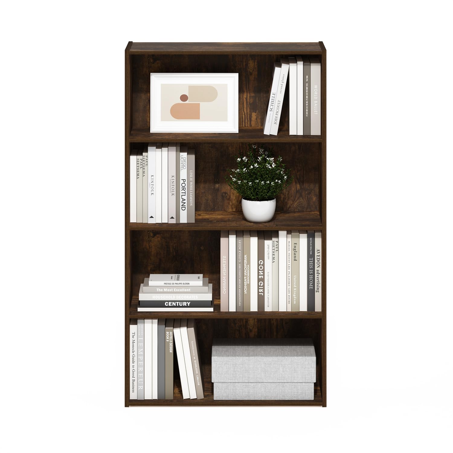 Furinno PASIR Book Shelf, 4-Tier Bookshelf, Bookcase with Open Shelf, 9.4 x 23.6 x 41.7, for Living Room, Bedroom, Home Office, Amber Pine