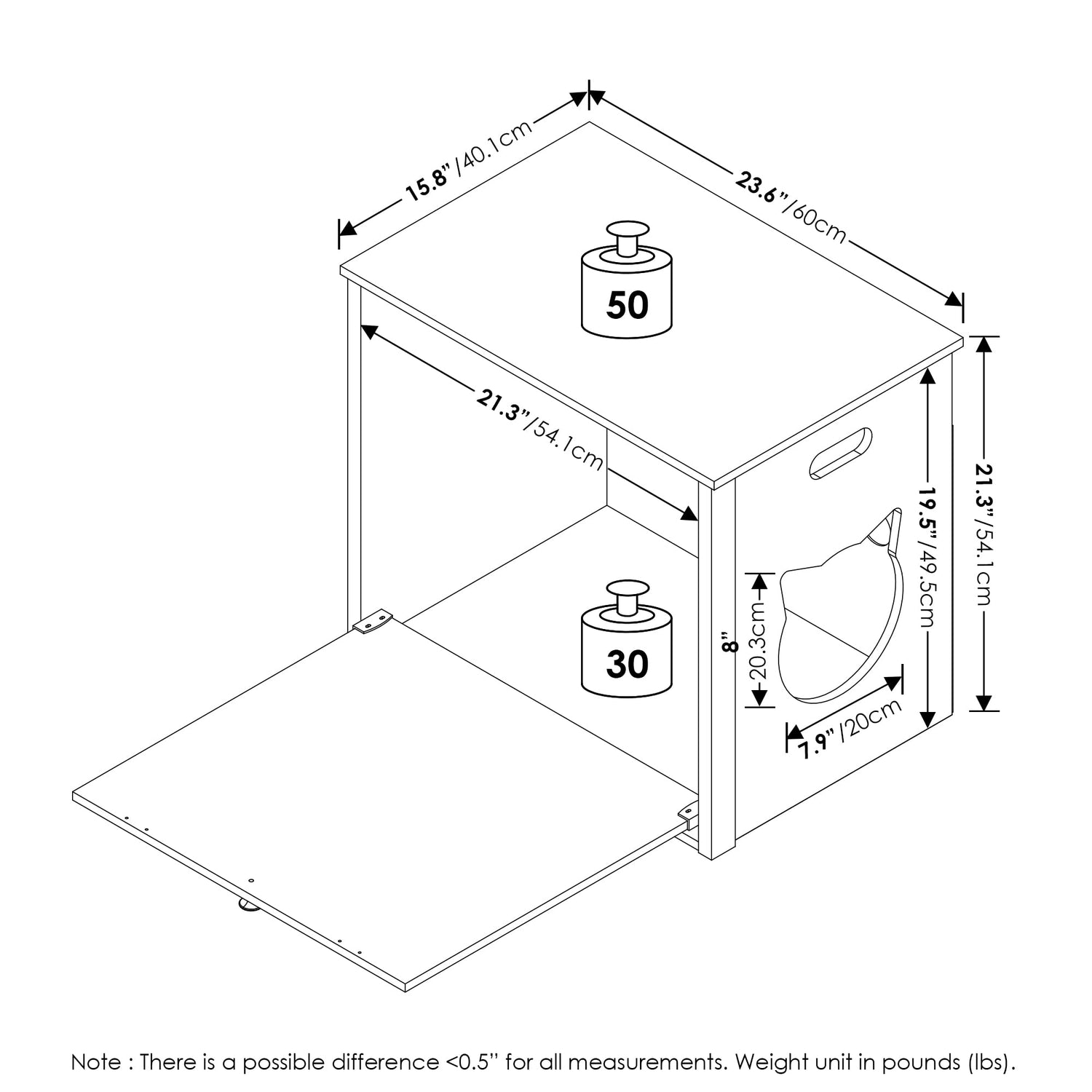Details: The Furinno Peli Small Cat Litter Box Enclosure with Single Door offers a practical and stylish solution for managing your cat's litter area. With its compact design, this enclosure fits seamlessly into small spaces, providing your feline companion with privacy while minimizing litter tracking. The single door entry allows for easy access, and the enclosure's sleek design effortlessly complements any home decor. The Cat Litter Box is made of CARB-grade composite wood tested for durability and sturdiness. Assembly is easy with provided step-by-step instructions. Care instructions: wipe clean with a clean damped cloth. Avoid using harsh chemicals. Pictures are for illustration purposes. All decor items are not included in this offer. The product is entitled to a 1-year warranty against manufacturer defects. Fits Space,Fits Budget.