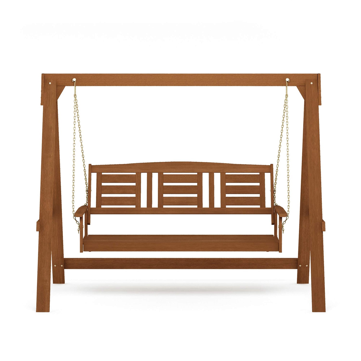 Furinno Tioman Hardwood Patio / Garden / Outdoor Large Porch Swing, 3 Seater with Hanging Frame, Natural