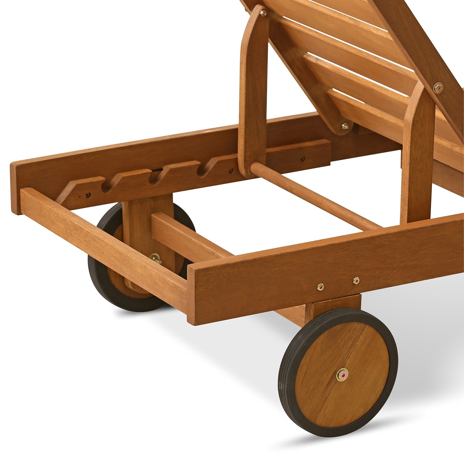 Furinno Tioman Outdoor Hardwood Patio Furniture Sun Lounger with Tray in Teak Oil, Natural 23.52D x 70W x 12H in