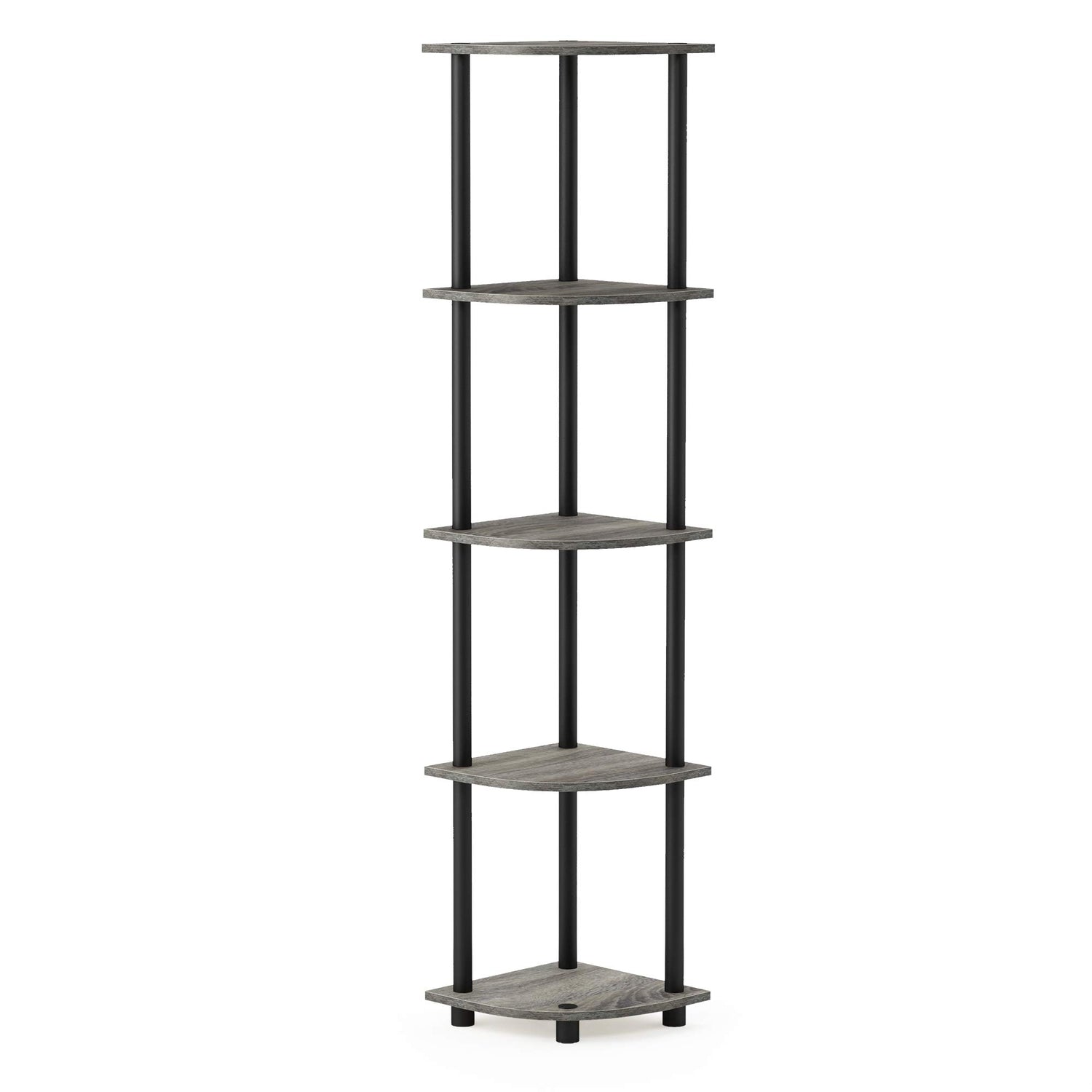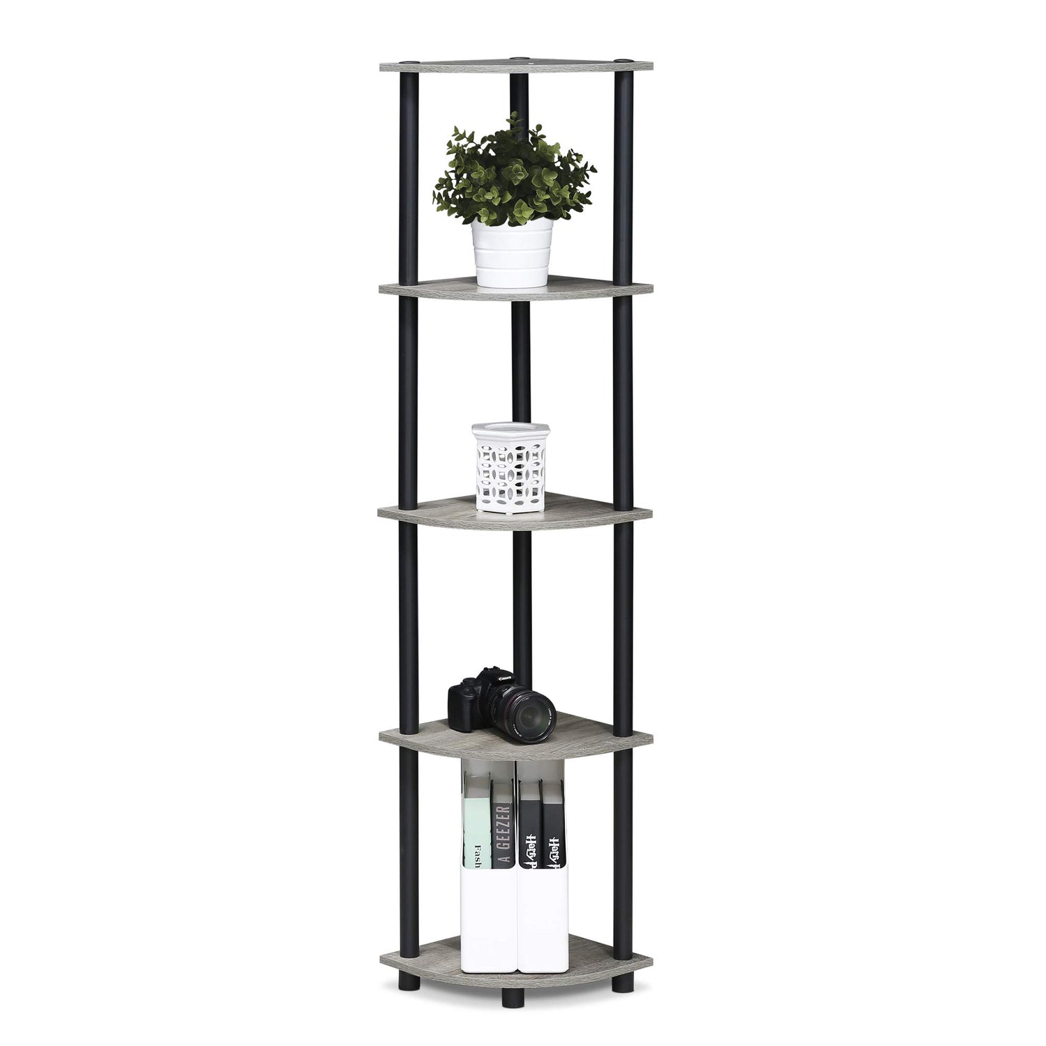 Furinno Turn-N-Tube 5 Tier Corner Display Rack Multipurpose Shelving Unit, 1-Pack, French Oak Grey/Black