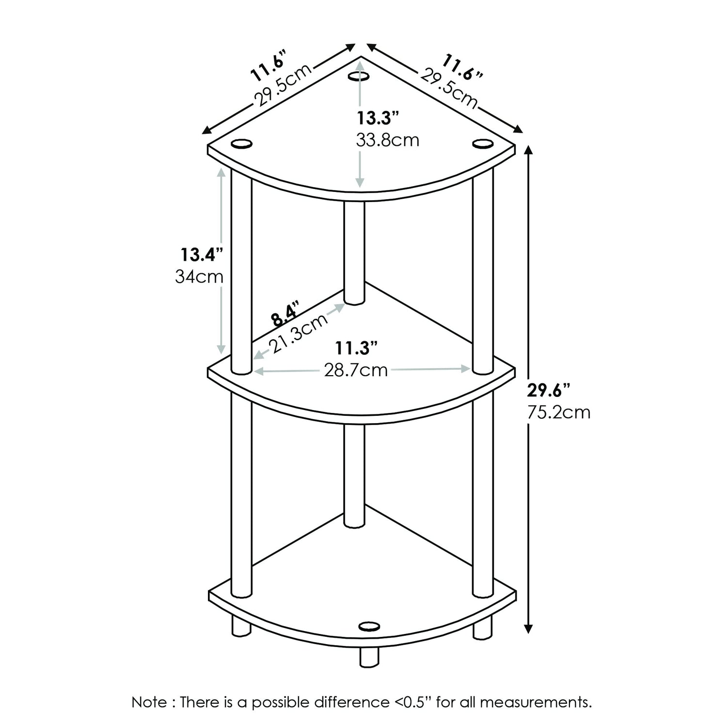 - SPACE-SAVING CORNER DESIGN: This 3-tier corner shelf features a compact vertical layout with rounded shelves, making it perfect for utilizing unused corner space in living rooms, bedrooms, or small apartments