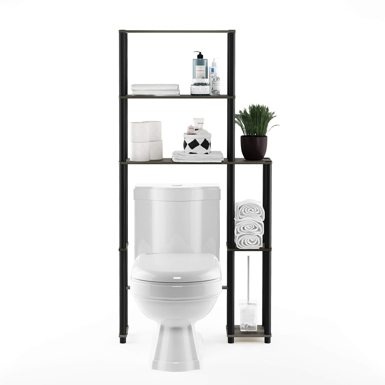 Furinno Turn-N-Tube Over The Toilet Storage, 5 Shelves Bathroom Organizer Space Saver Rack, French Oak Grey/Black