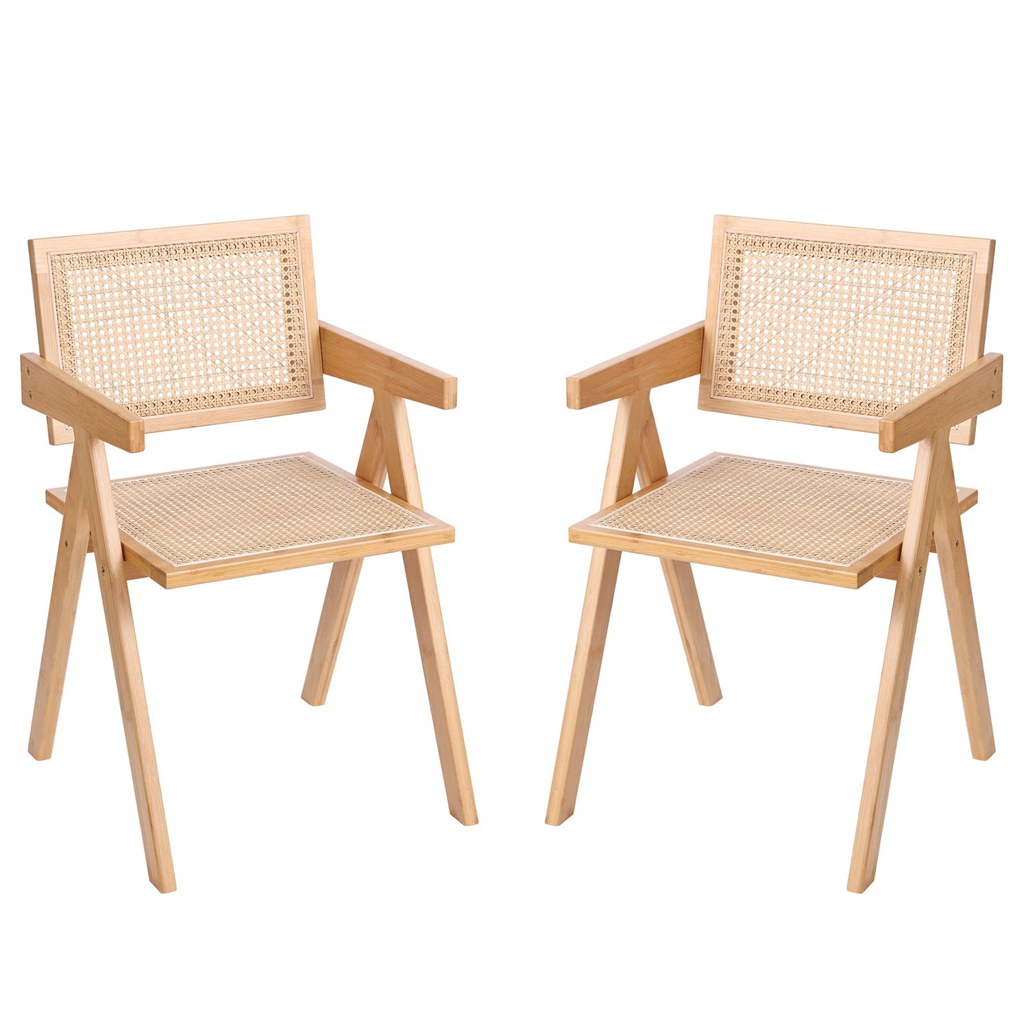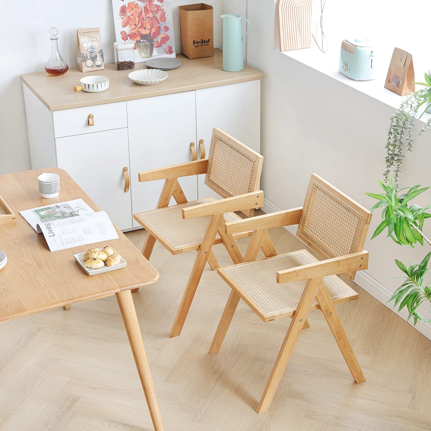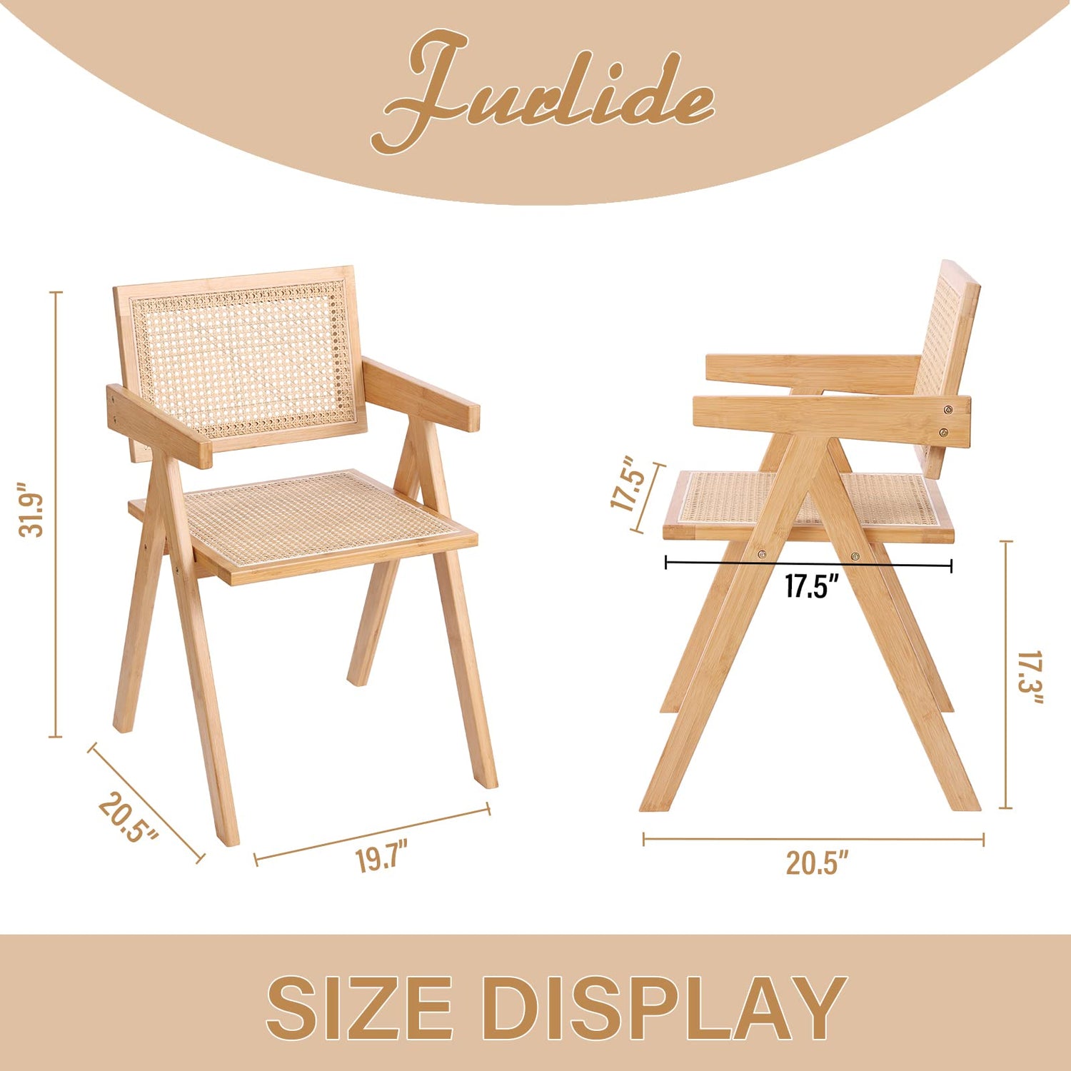 Furlide Rattan Dining Chairs Set of 2, Modern Mid Century Accent Chairs, Comfy Armchairs, Outdoor Rattan Chairs with Armrest for Bedroom Living Room Reading Room Dining Kitchen