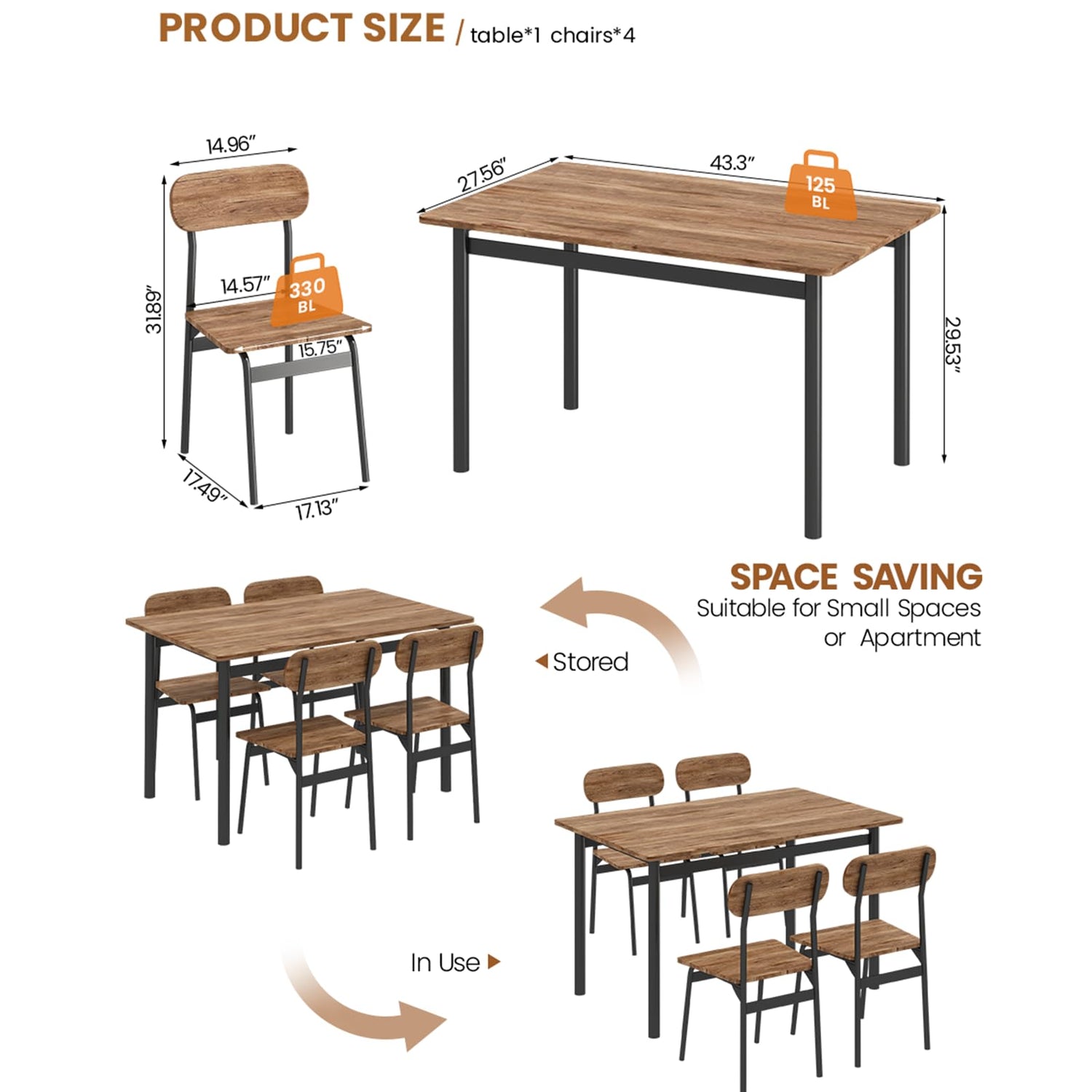 - 🪑【Size & Assemble】 Table size: 43.3L*27.56W*29.53H inches, Chair size: 17.13L*19.49W*31.89H inches. Dining table set for 4 is easy to assemble and the package comes with all accessories and instructions.