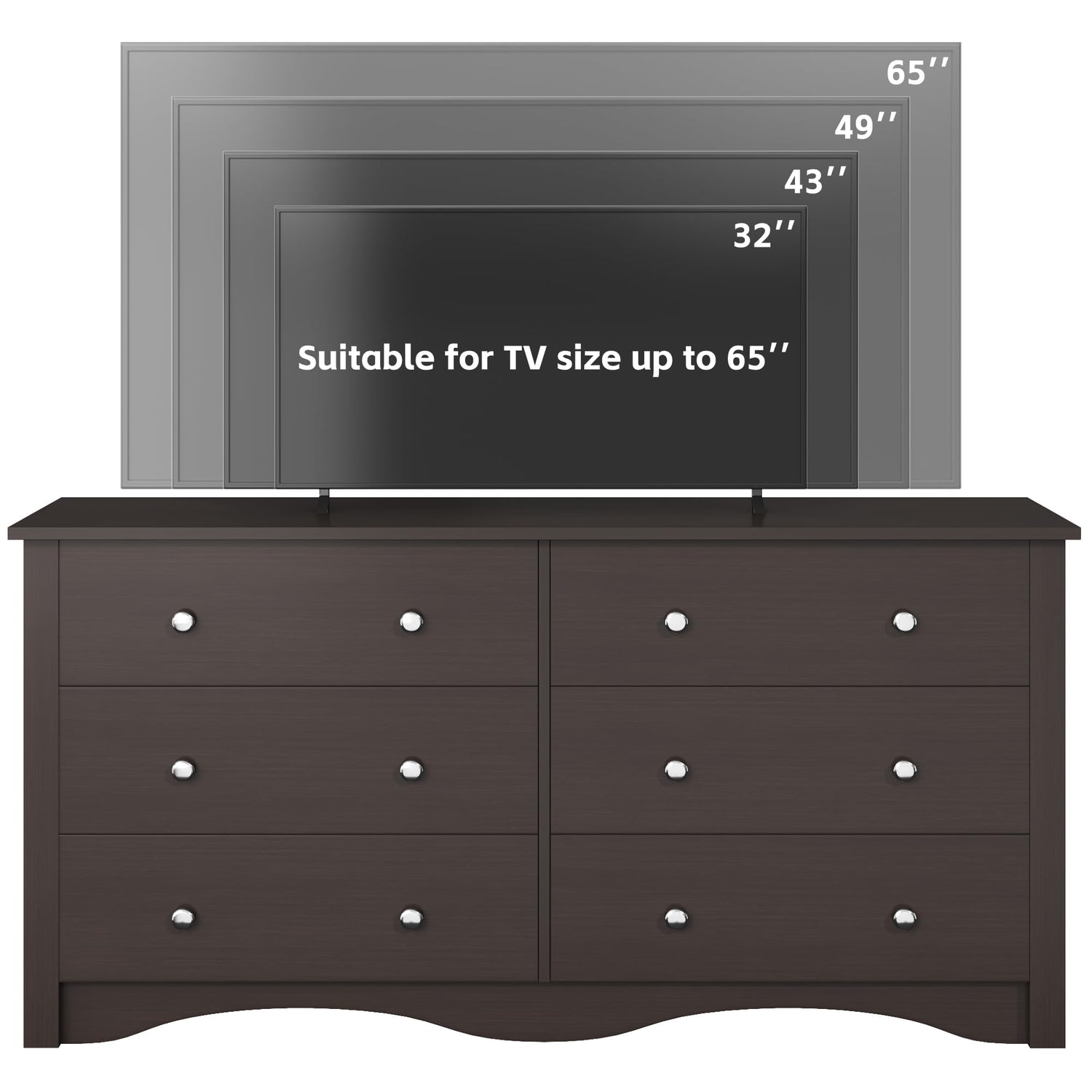 Furmax 6 Wood Drawers Dresser for Bedroom, Double Dresser for TV up to 65 inch, TV Stand Storage Chest of Drawers for Living Room Hallway Entryway (Brown)