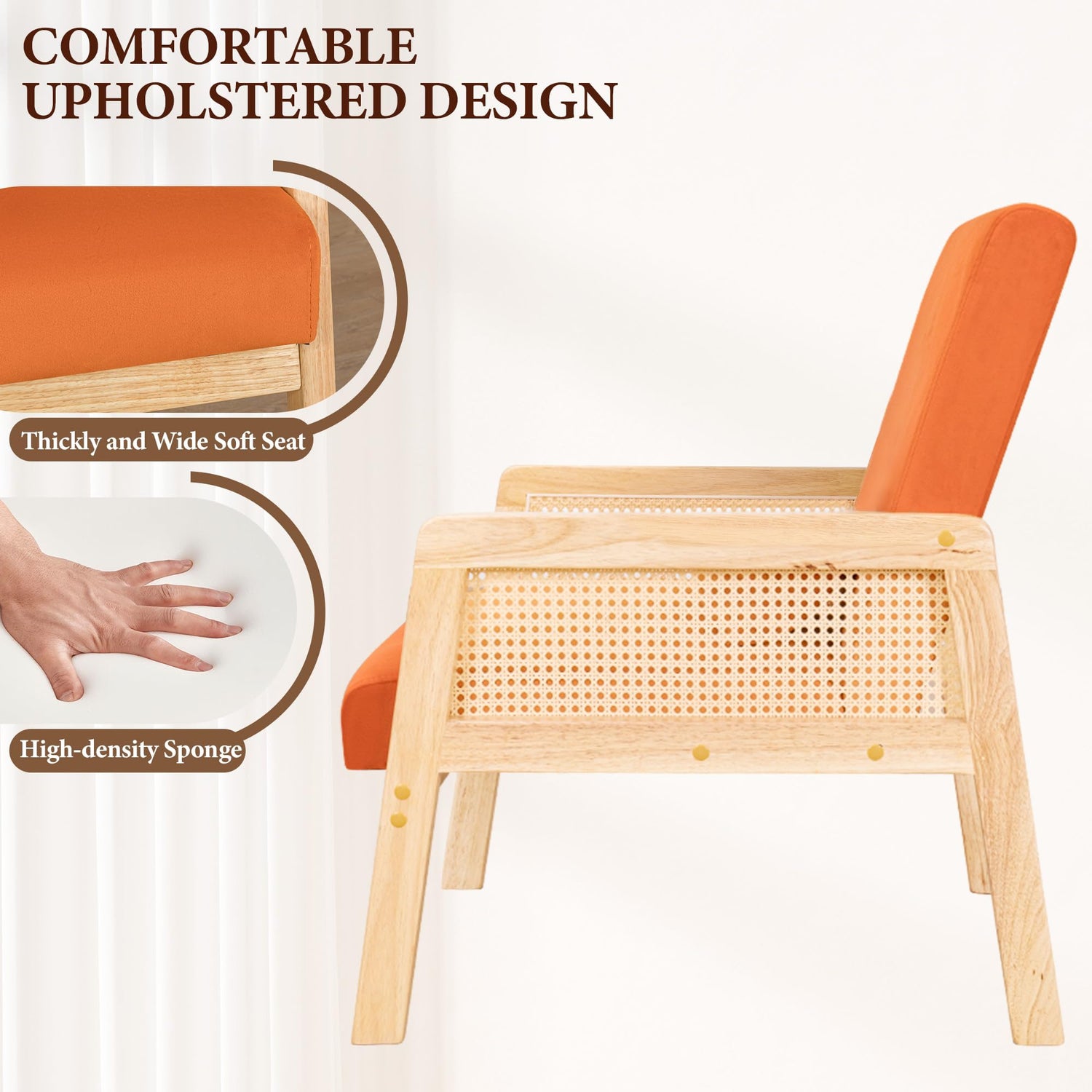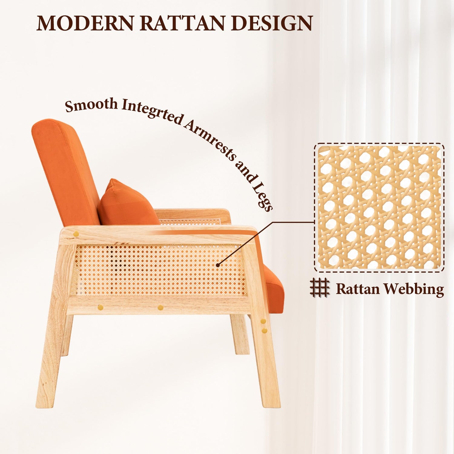 Furmax Accent Chair with Rattan Armrests, Mid Century Modern Lounge Armchair for Living Room, Single Upholstered Leisure Reading Chair with Waist Pillow and Wooden Frame,Set of 1