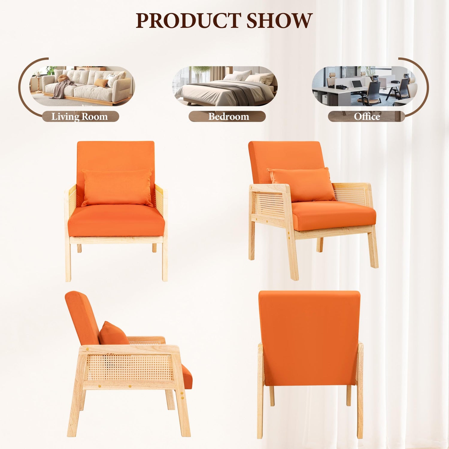 - Modern Accent Chair: This living room chair adopts a simple and fashionable, smooth lines, elegant 0range color which covered seat, mid-century rattan webbing design that can be integrated with different interior environments and enhance the overall aesthetics of the space.