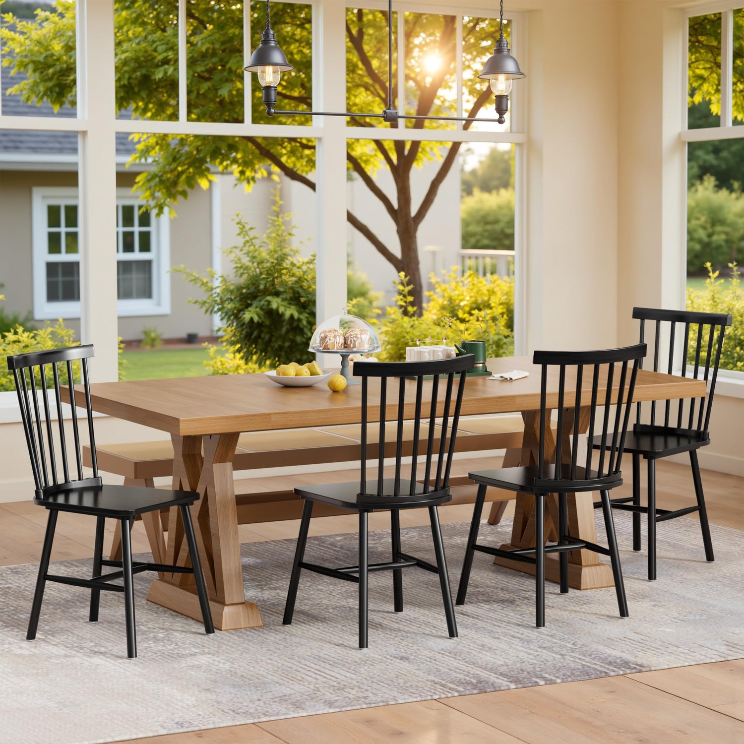 Furmax Black Dining Chairs Set of 4 Wooden Dining Chair Farmhouse Spindle Back Kitchen Chairs Windor Dining Chairs for Kitchen, Living Room, Restaurant