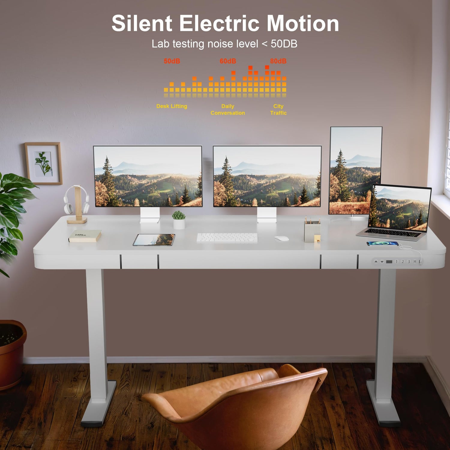 - Integrated Charging Solution: The handy charging ports support USB, type A and C connecting, recharge your tablet, mobile phone, or headphones directly into the standing desk, so avoid any low battey cases.