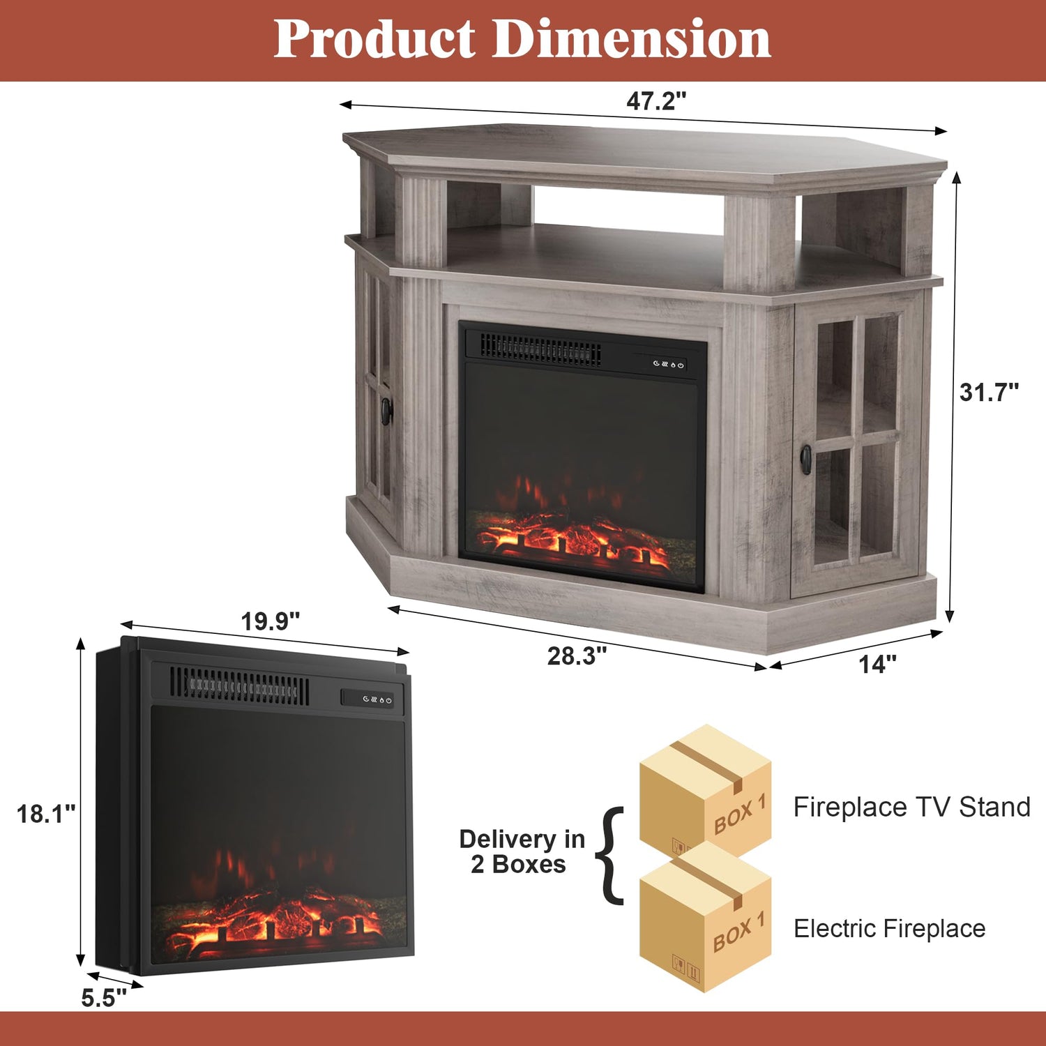 - Packing: Please note the fireplace corner TV Stand will be delivered with two separate packages and might arrive on different days. One box includes the TV stand and the other box includes an electric fireplace.