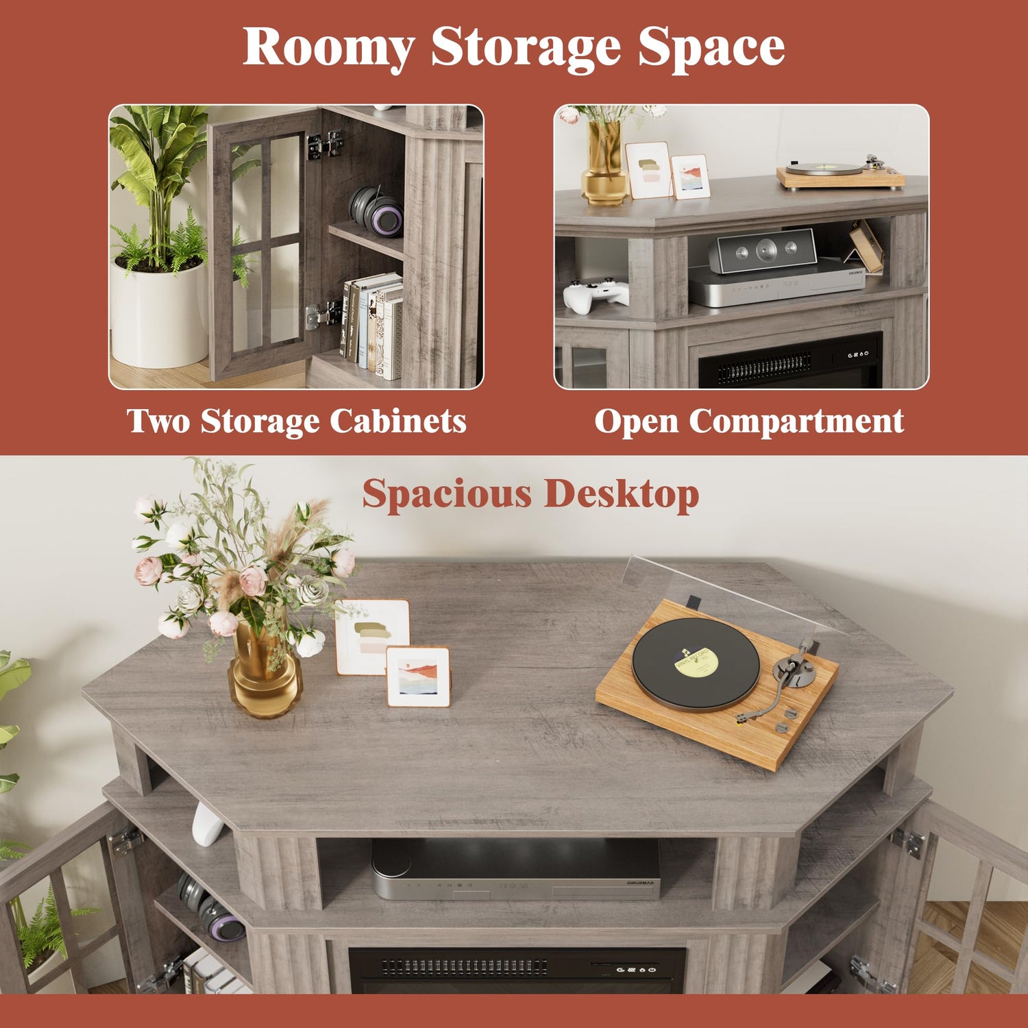 - About Assembly: This fireplace corner TV stand is equipped with easy-to-understand instructions,clearly labeled accessories.This media furniture requires 2 people to assembly. You can complete the assembly by following the detailed steps in 45minutes. Then you can clean the surface of the particleboard with a lightly dampened cloth and make sure to dry the furniture immediately after cleaning.