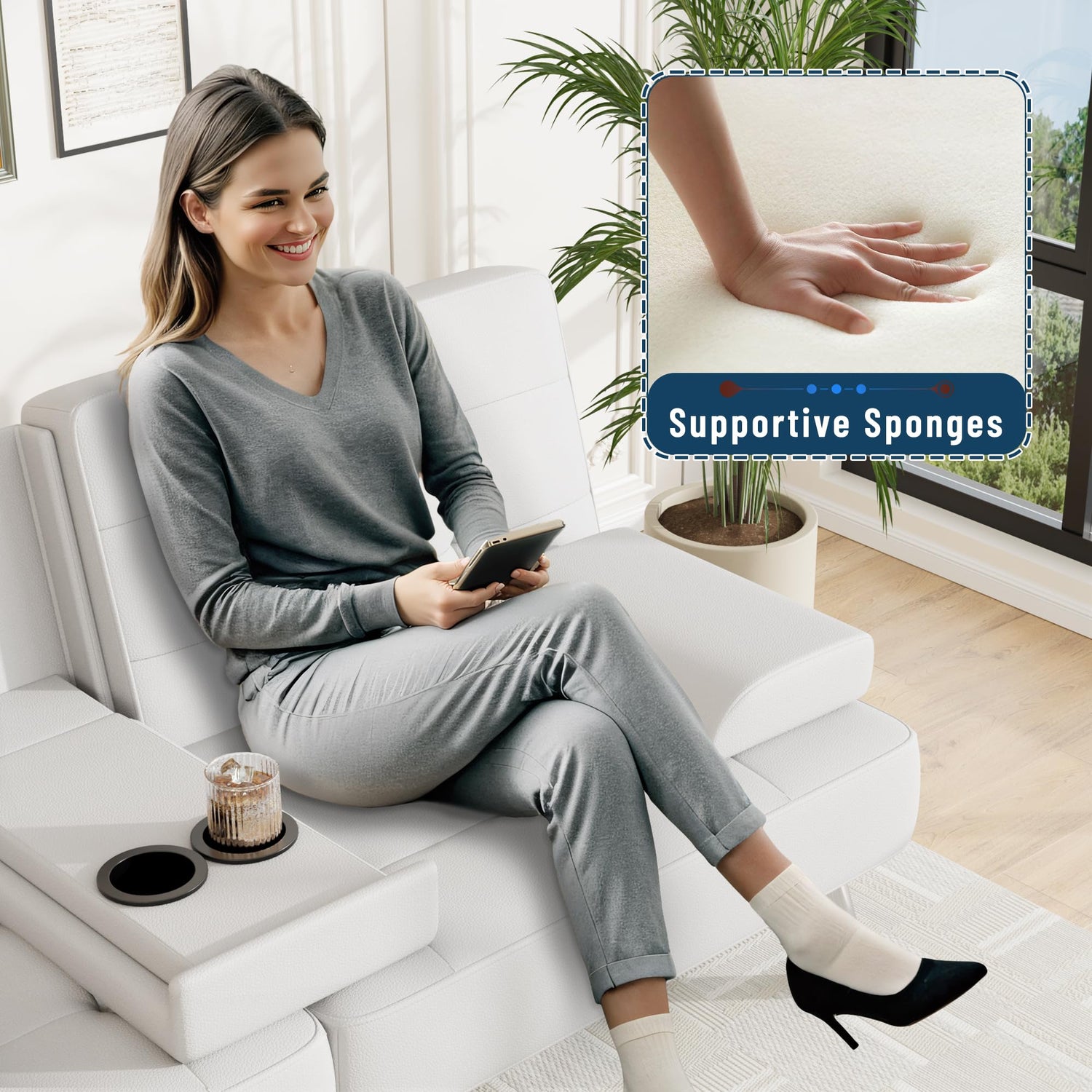 Furmax Futon Sofa Bed Adjustable Futon Couch Sleeper Sofa Bed for Living Room, Business Office, Recliner Sofa with Cup Holders (PU Leather, White)