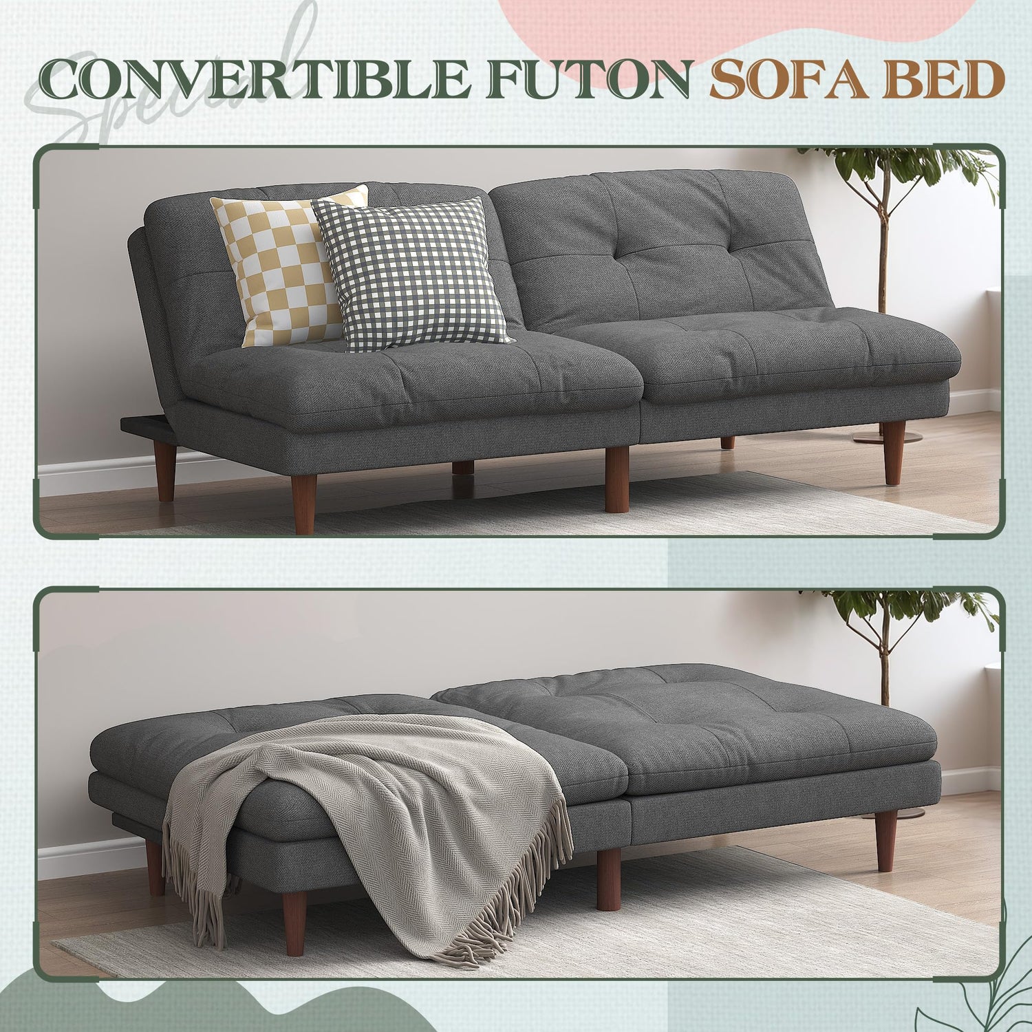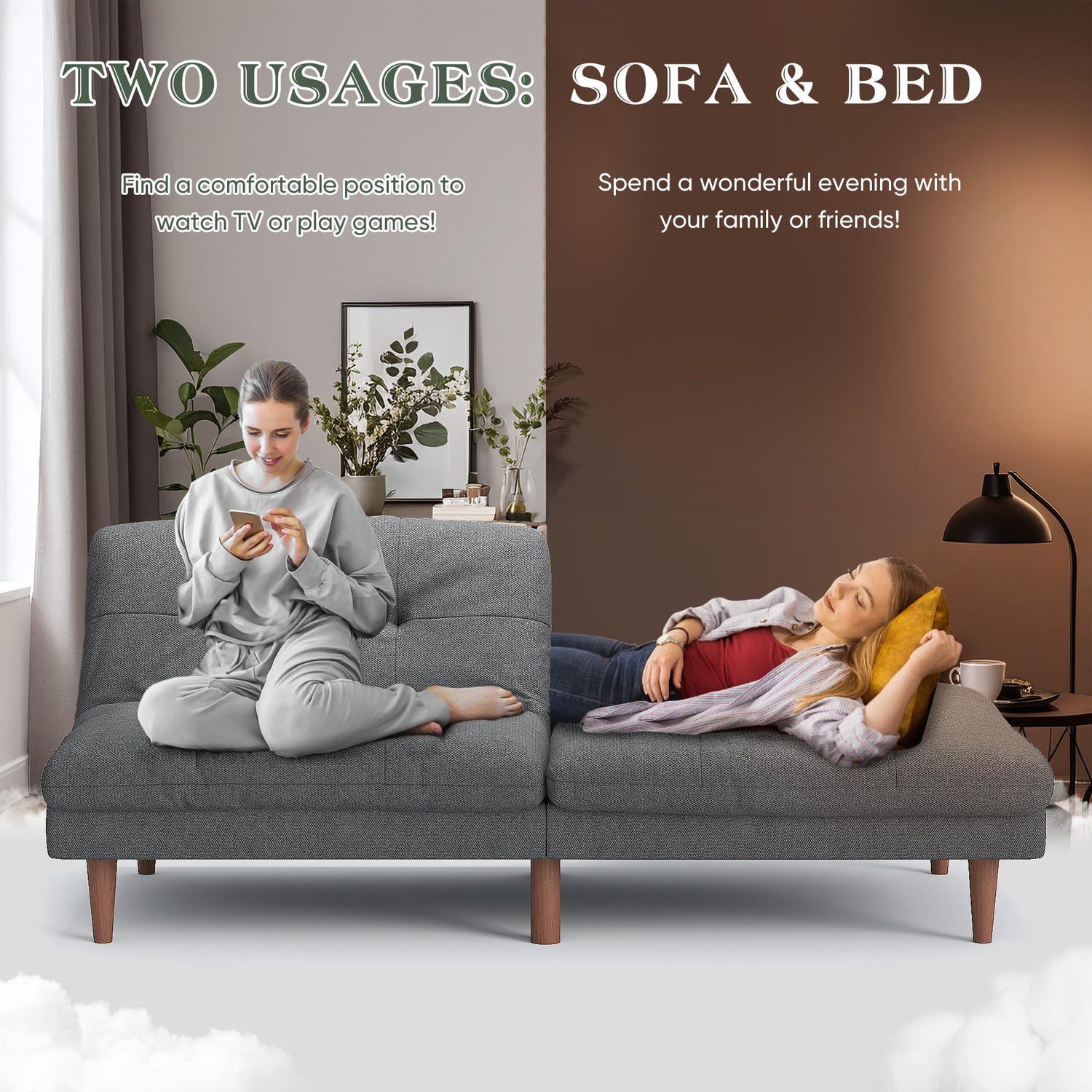 Furmax Futon Sofa Bed Modern Linen Couch Convertible Folding Futon Reclining Sleeper Sofa Couch for Small Space Apartment Loveseat with Adjustable Backrest (Dark Grey)