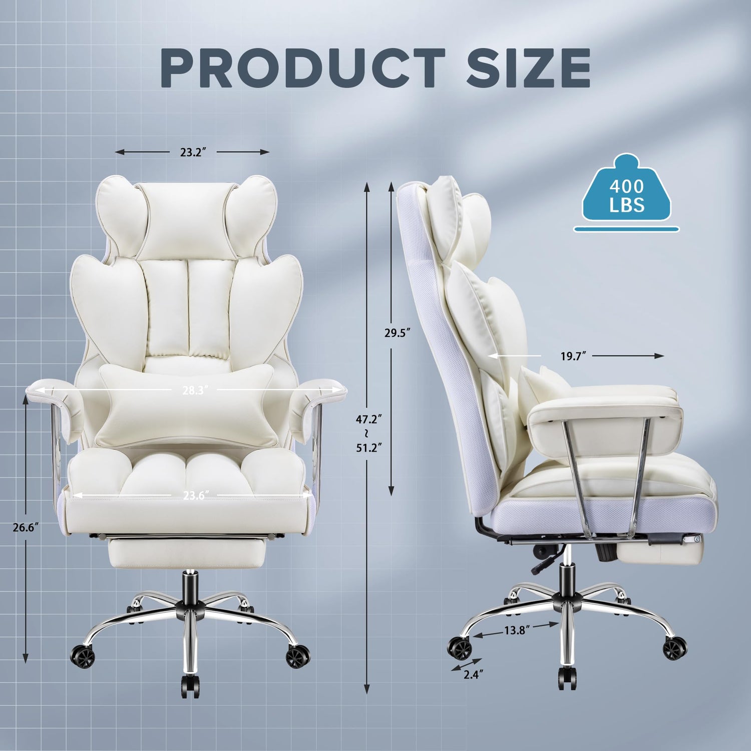 - Heavy-Duty Construction: Our leather home office chair with armrests features a heavy-duty metal base and sturdy supports. With a sturdy frame and quality materials, this tall office management chair can hold up to 400 pounds, providing stability and durability for users of all sizes. A wider and thicker foam cushion reduces hip pain. This would be an ideal computer office chair for heavier people.