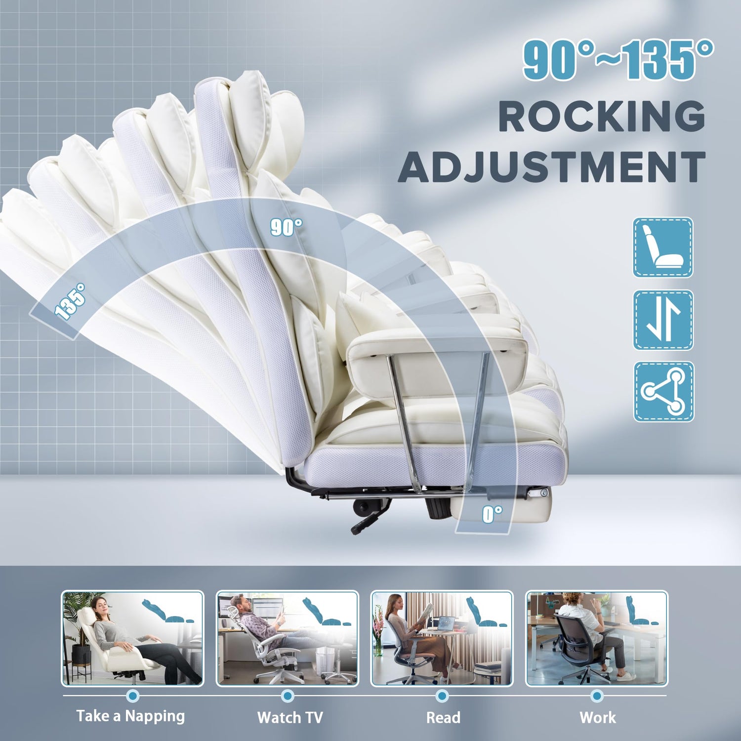 - adjustable office chair: This leather office chair with footrest offers a variety of adjustable features including seat height, tilt stretch angle, 360° swivel and glide so you can find the perfect sitting position for your individual needs. With a maximum tilt angle of 135°, experience the comfort and flexibility of this reclining office chair, ideal for your home office.
