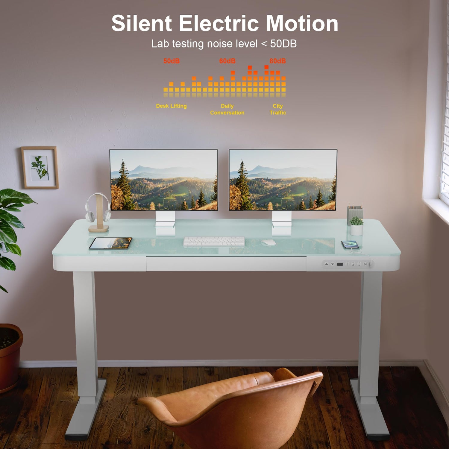 Details: Browse our store and find the healthier balance on work, by changing between sitting and standing postures throughout a weekday, with powerful, quiet motor, smooth desk raising, and strong structure of metal legs and feet, also, the desk is easy to control and make adjustment, programmed with three memory presets, and in fashion elegant look, all to make your every working day happier and energized.
