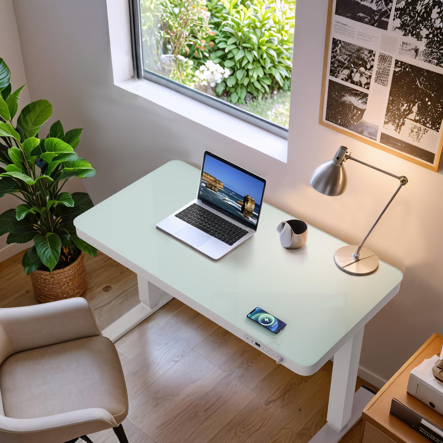 - Integrated Charging Solution: The handy charging ports support USB, type A and C connecting, recharge your tablet, mobile phone, or headphones directly into the standing desk, so avoid any low battey cases.