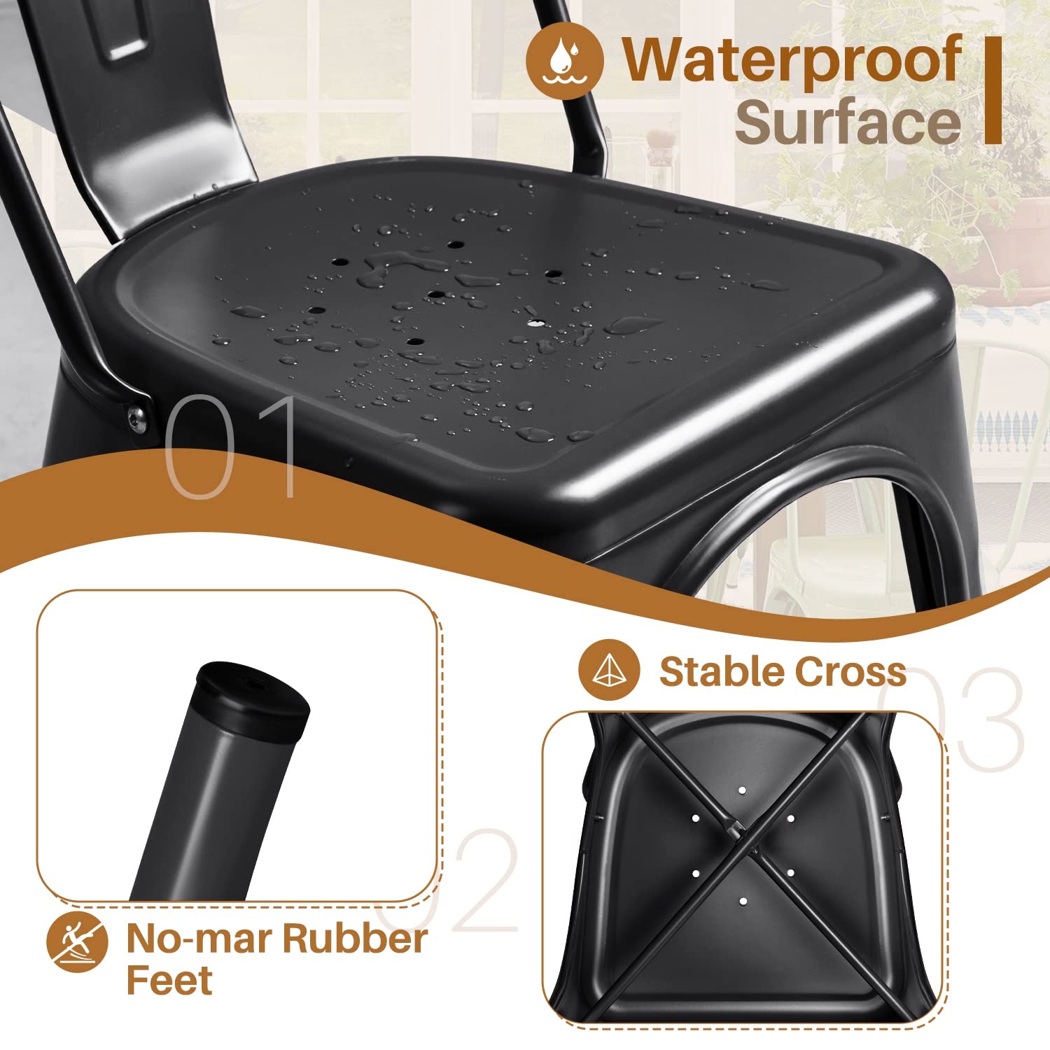 - Rust & Scratch Resistant: Using the latest formaldehyde free and environmental friendly painting material, double electrostatic spraying technology, for making the metal dining chair water and rust resistant, scratch resistant, and easy to clean, no worry for outdoor environment.