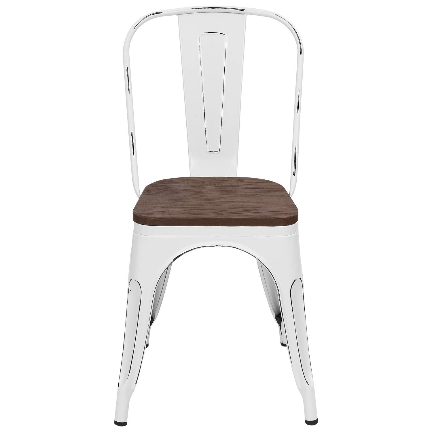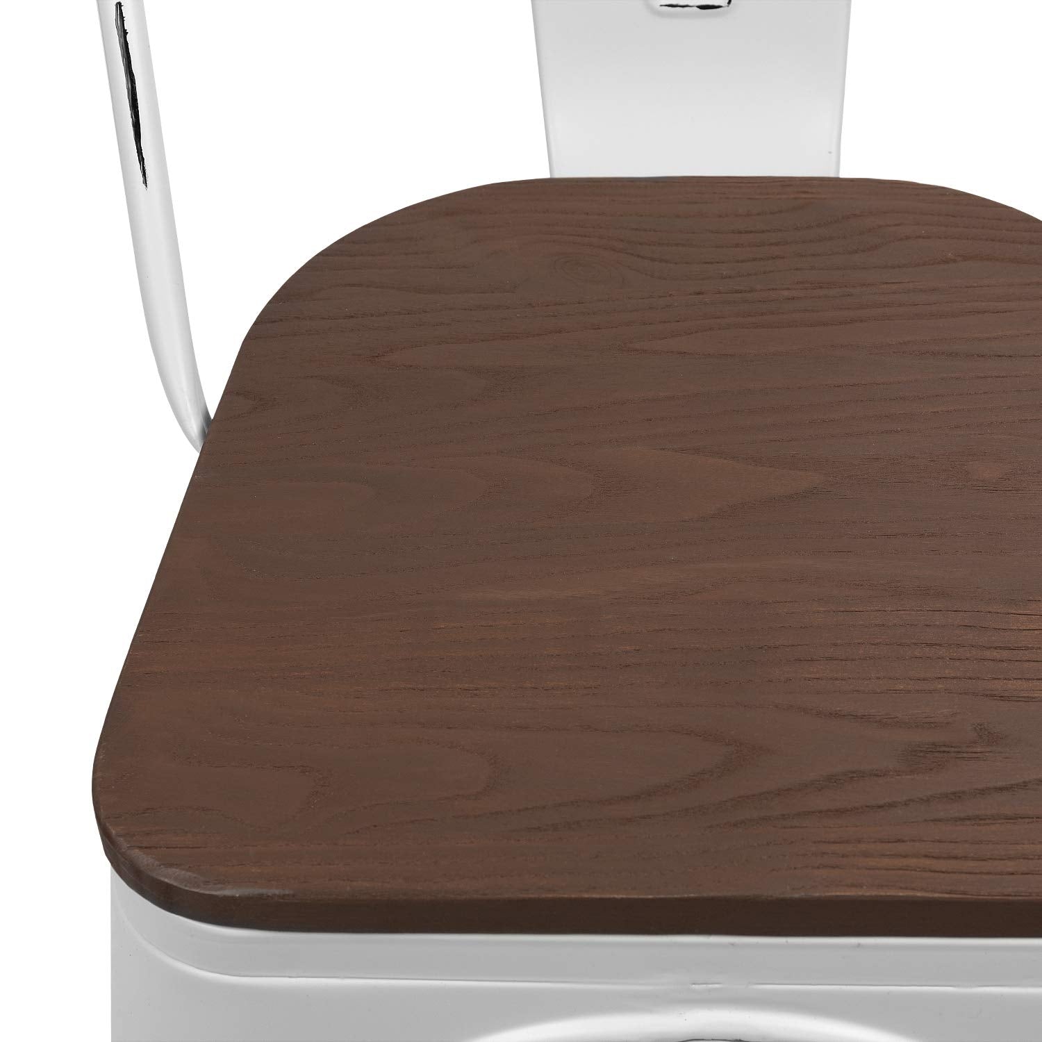 Furmax Metal Dining Chairs with Wood Seat, Indoor-Outdoor Use Stackable Chic Dining Bistro Cafe Side Metal Chairs Set of 4(White)