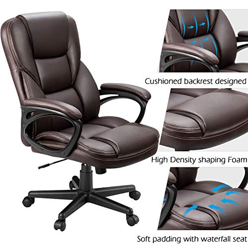 Furmax Office Executive Chair High Back Adjustable Managerial Home Desk Chair, Swivel Computer PU Leather Chair with Lumbar Support (Brown)
