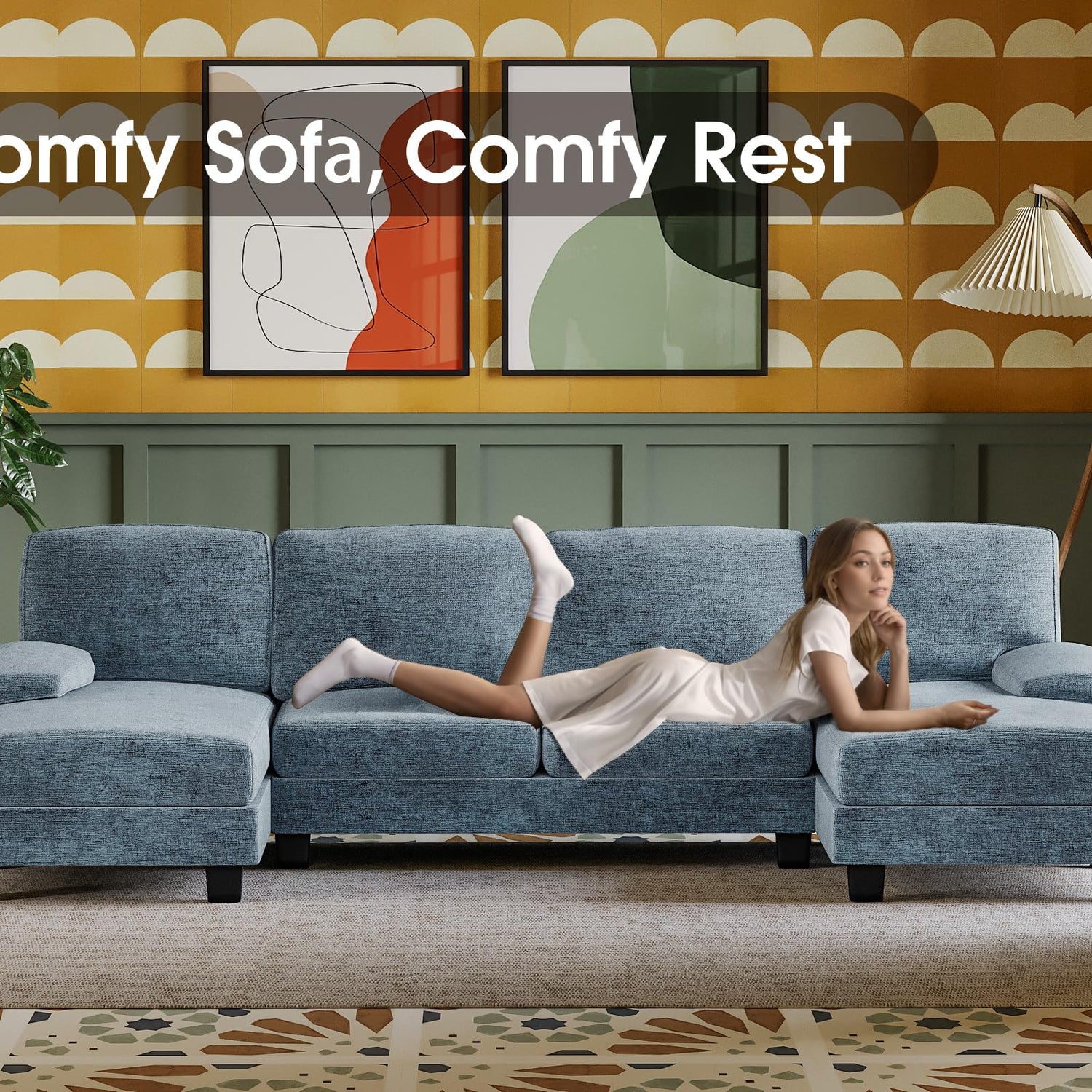 - Comfortable Couch: Made of breathable skin-friendly fabric, offers a soft and natural touch when sitting or lying on this sofa. Linen Fabric does not pill and ensure long-term use.