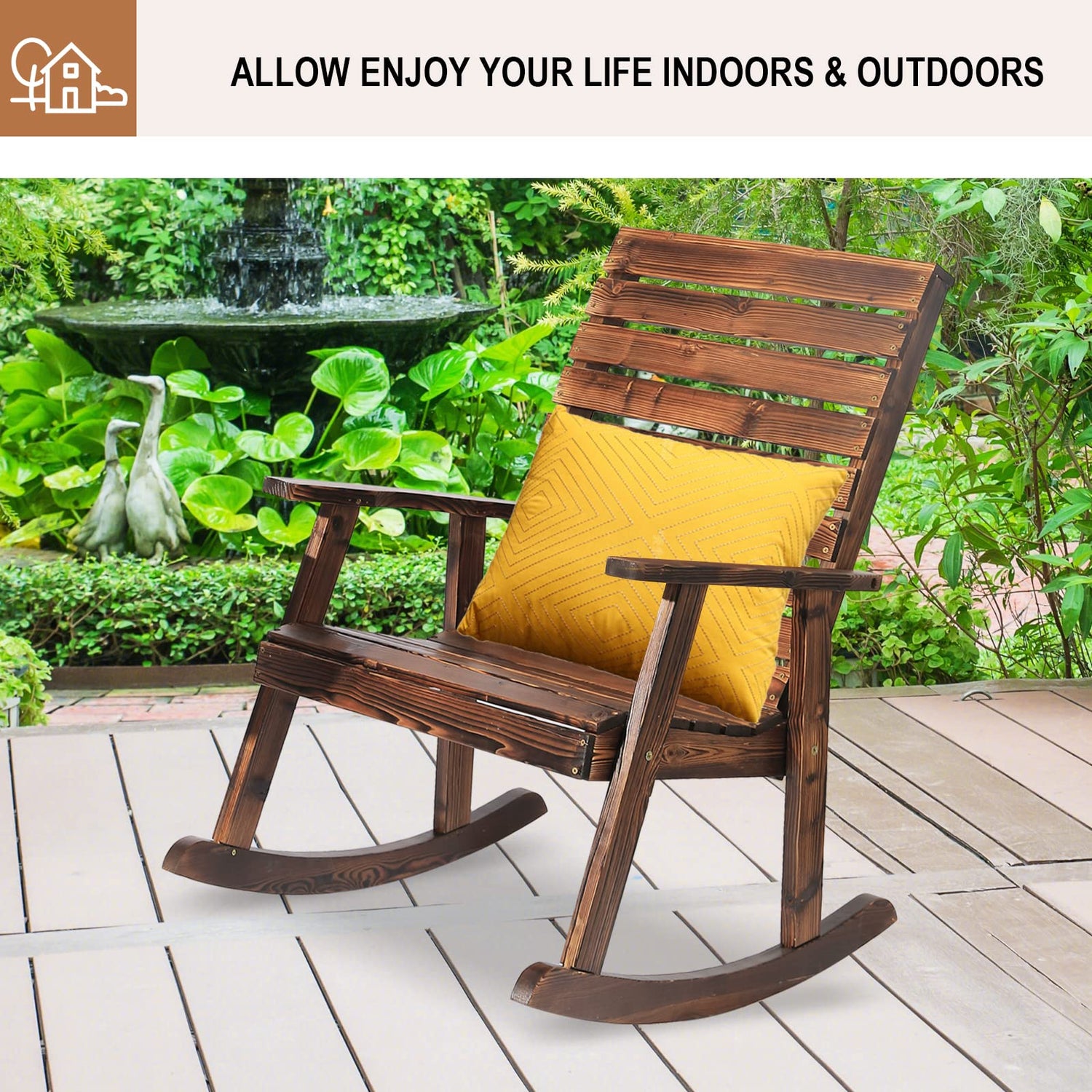 FURNDOOR Outdoor Wood Rocking Chair, Porch Rocking Chair Wooden Rustic High Back Rocker for Indoor, Backyard, Patio, Natural