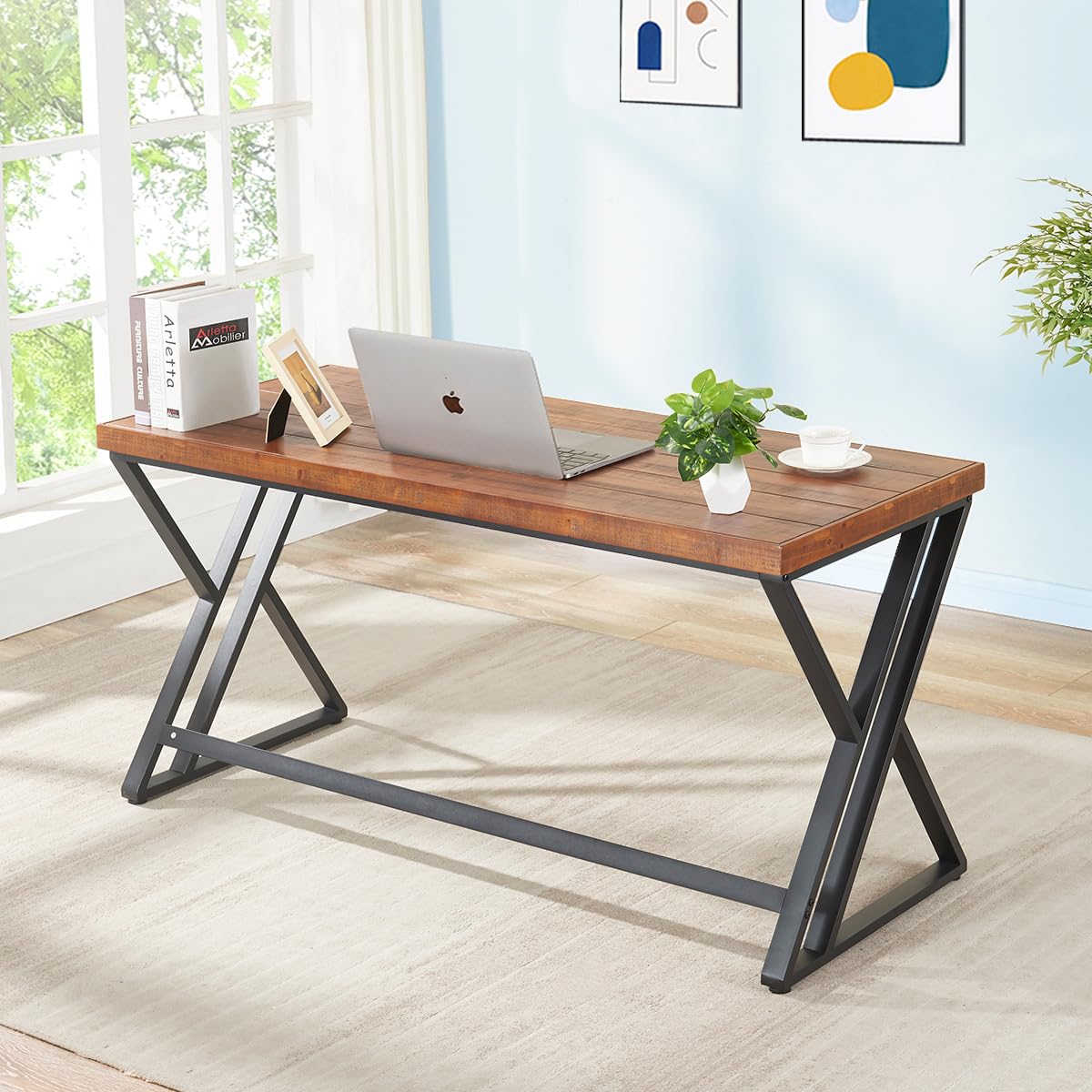 - Durable and Ergonomic Brown Real Wood and Metal Writing Desk: With a 30-inch height, 55-inch Wide and thick solid wood tabletop and two strong metal legs easily support up to 360 LBS. Multipurpose Desk, the spacious legroom accommodates various chairs, making it suitable as a home office executive desk, PC Gaming Table, or Workstation for Living Room Bedroom, and allow your arms to bend at a 90-degree angle, providing comfortable support while typing.