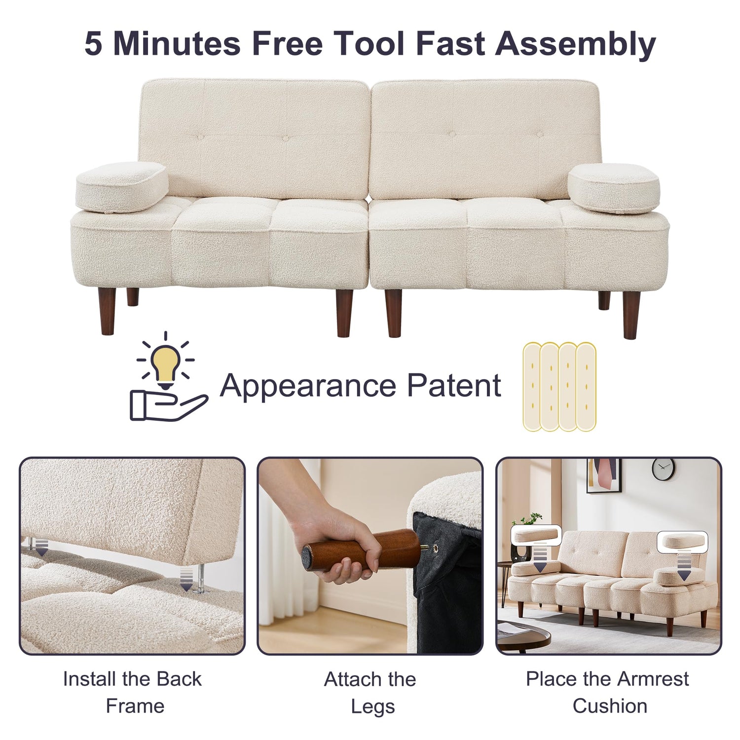 Furnify Cloud Couch, 76" Loveseat Sofa Bed with Removable Armrest, Boucle Sherpa Sofa Bed, Comfy Upholstered Sleeper Sofa for Living Room, Bedroom, Office, Beige Teddy