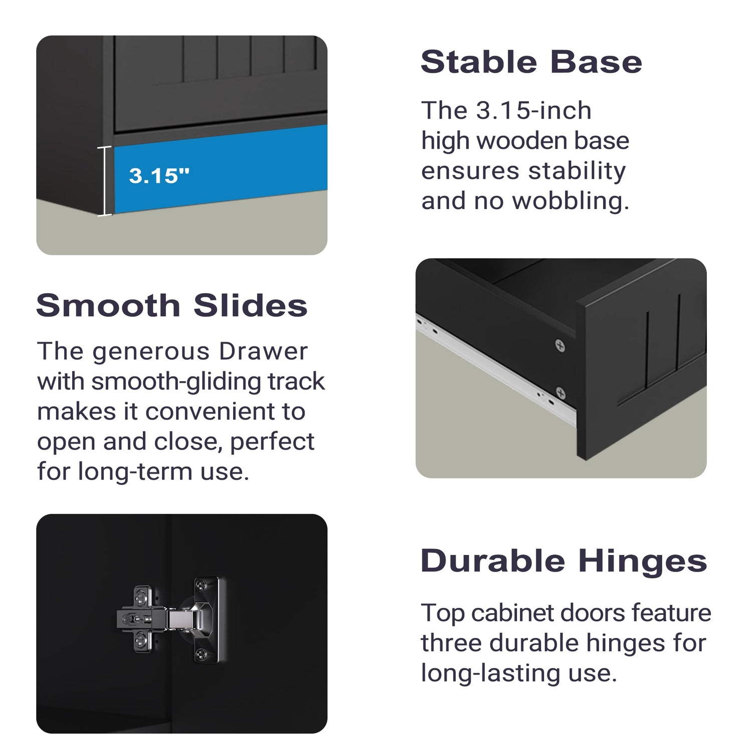 - Adjustable Shelves: This pantry storage cabinet is designed to perfectly adapt to your storage needs, featuring adjustable shelves that can be customized to 3 different height levels. Whether you need to store tall bottles, bulky kitchen appliances, or smaller items, the flexible design ensures optimal space utilization. The easy-to-adjust shelves make it simple to reorganize your storage as your needs change, offering both functionality and convenience